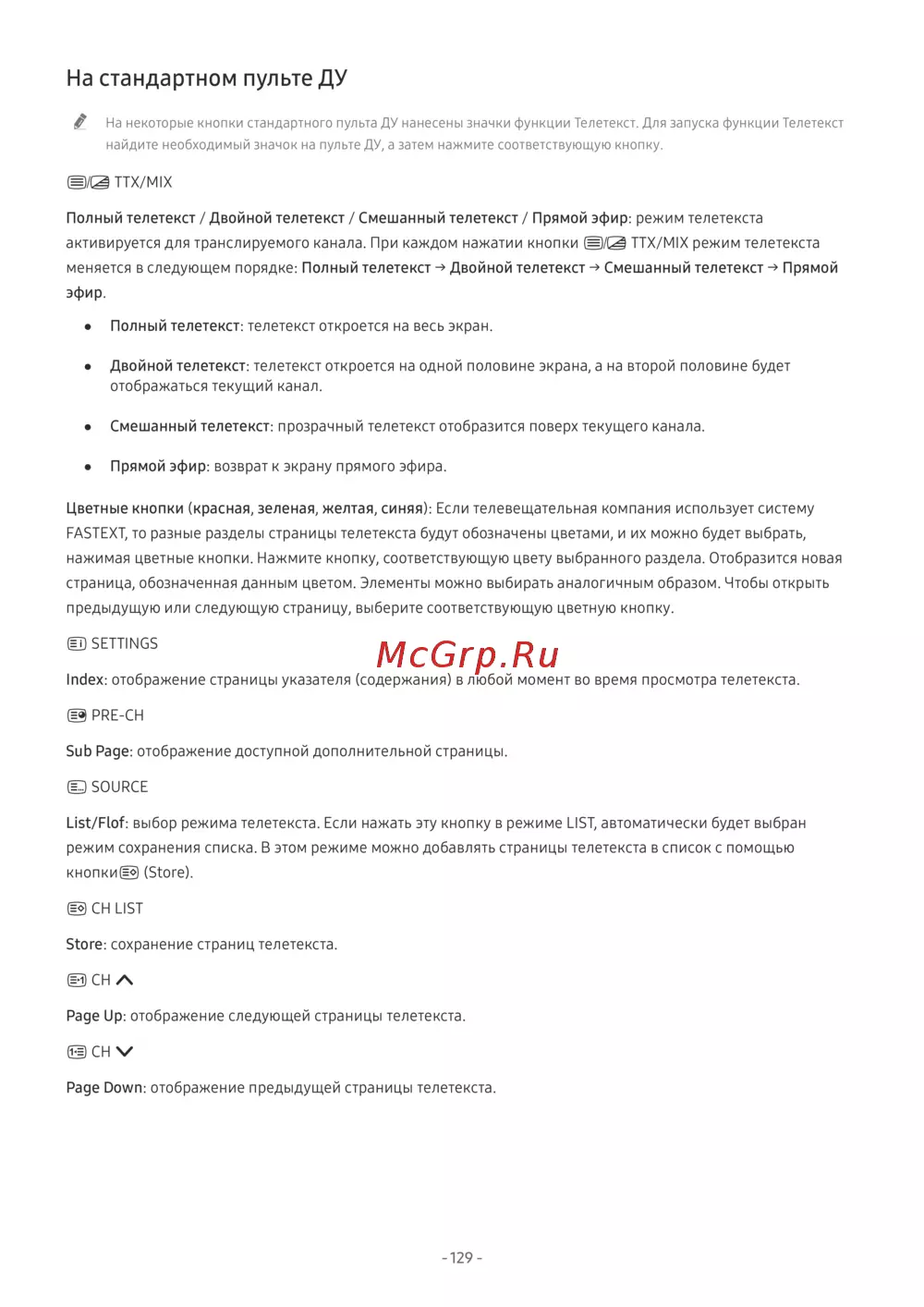 " На некоторые кнопки стандартного пульта ДУ нанесены значки функции Телетекст. Для запуска функции Телетекст