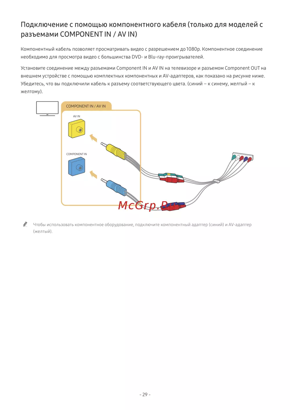 " Чтобы использовать компонентное оборудование, подключите компонентный адаптер (синий) и AV-адаптер