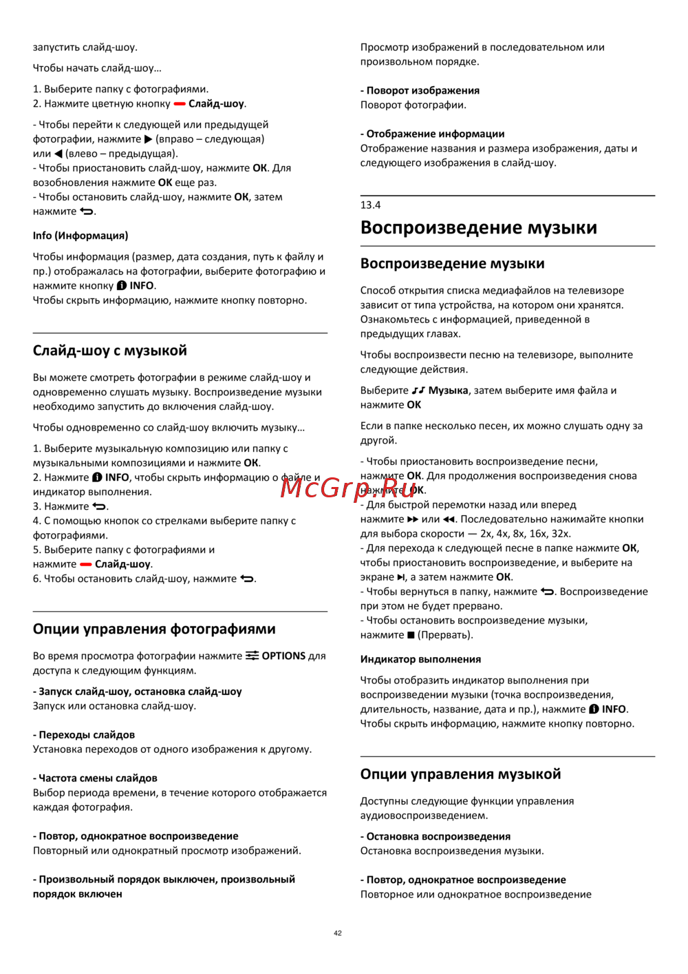 - Опции управления музыкой p.42