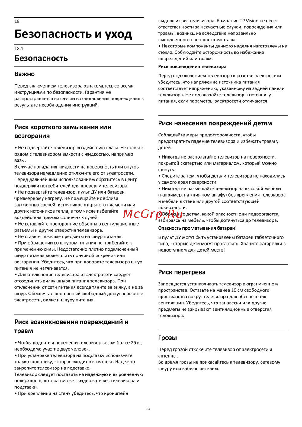 ![Philips 55PUT6162 [54/66] Риск короткого замыкания или возгорания](/views2/1931702/page54/bg36.png)