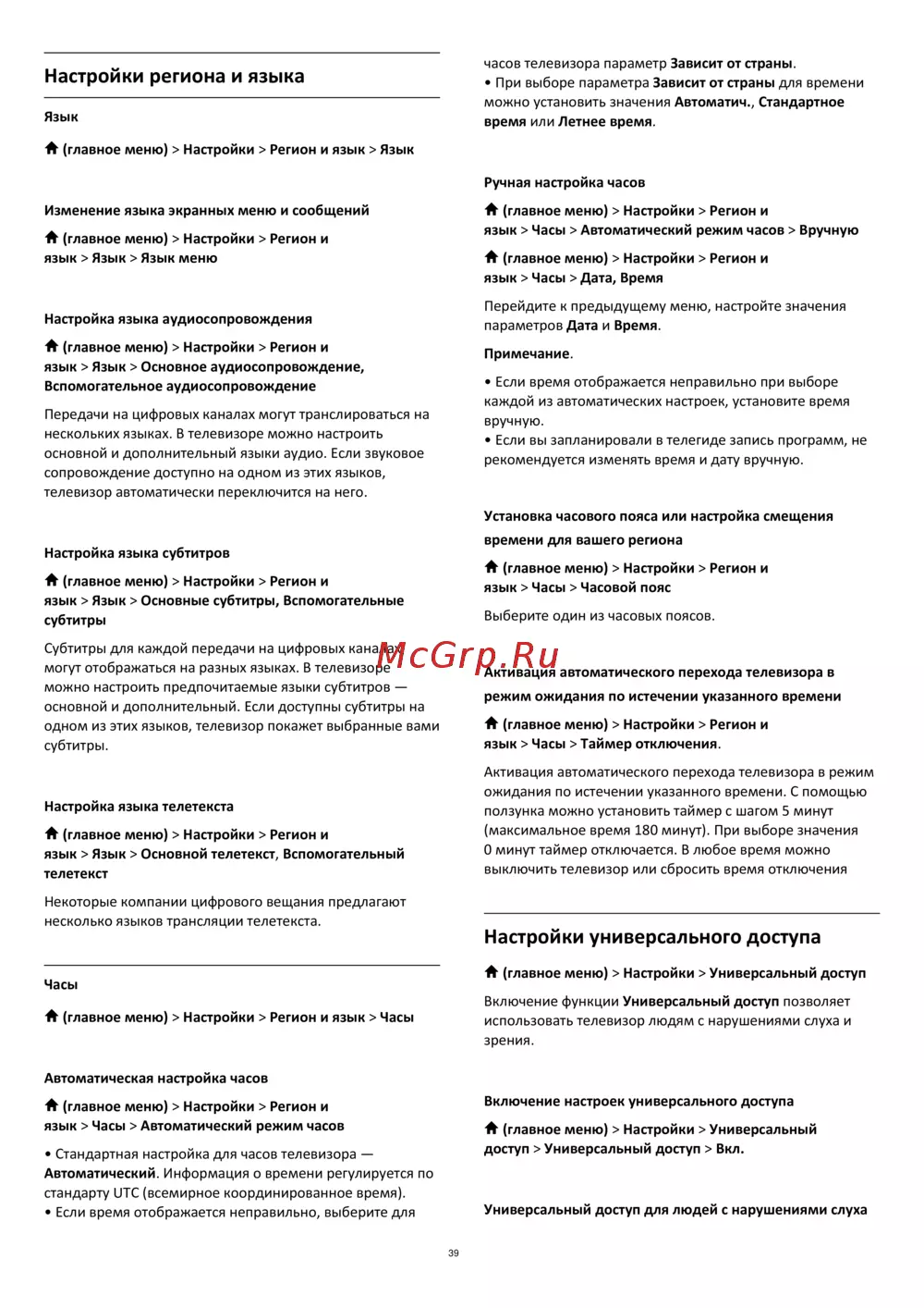 - Настройки региона и языка p.39