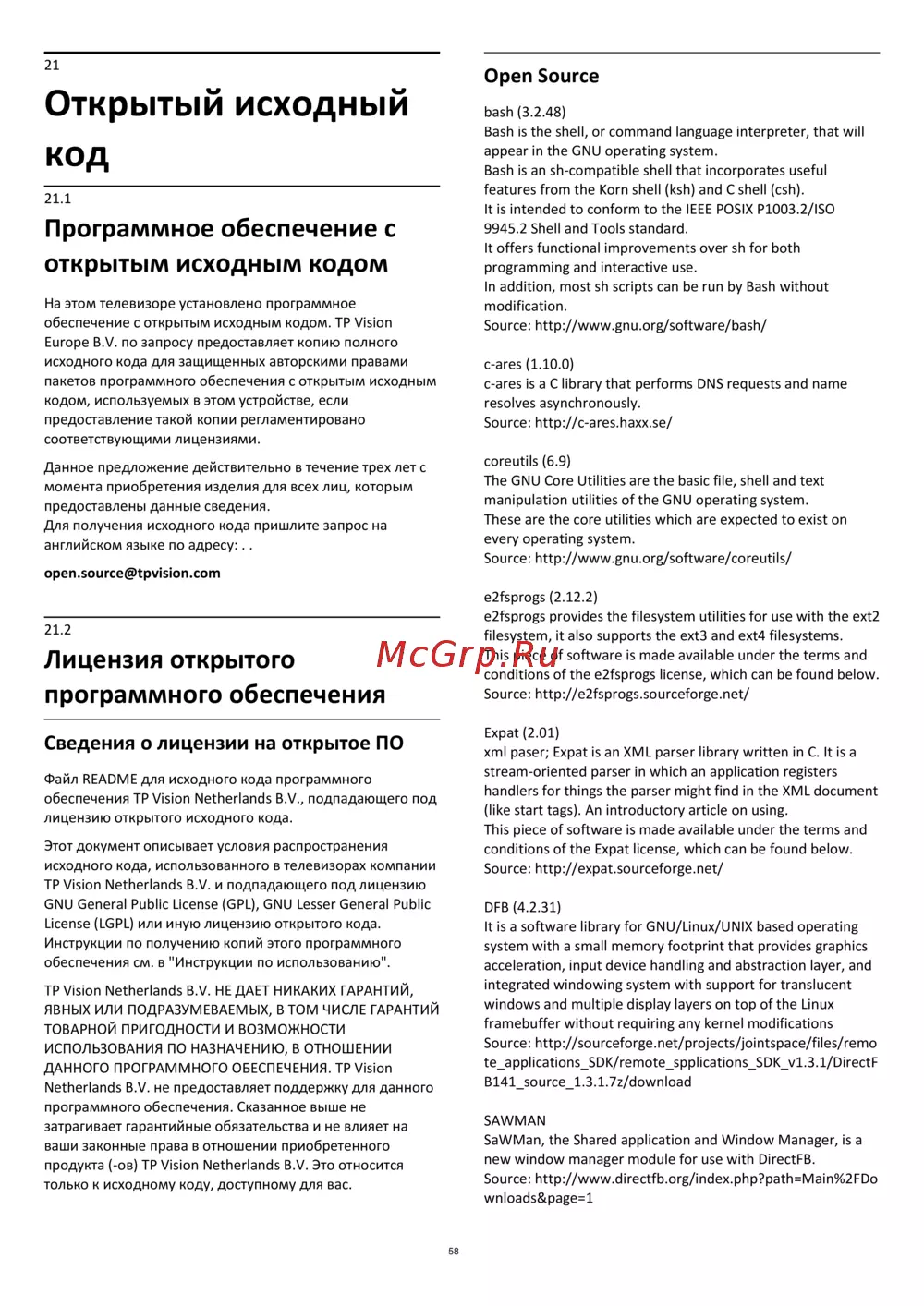 обеспечение с открытым исходным кодом. TP Vision