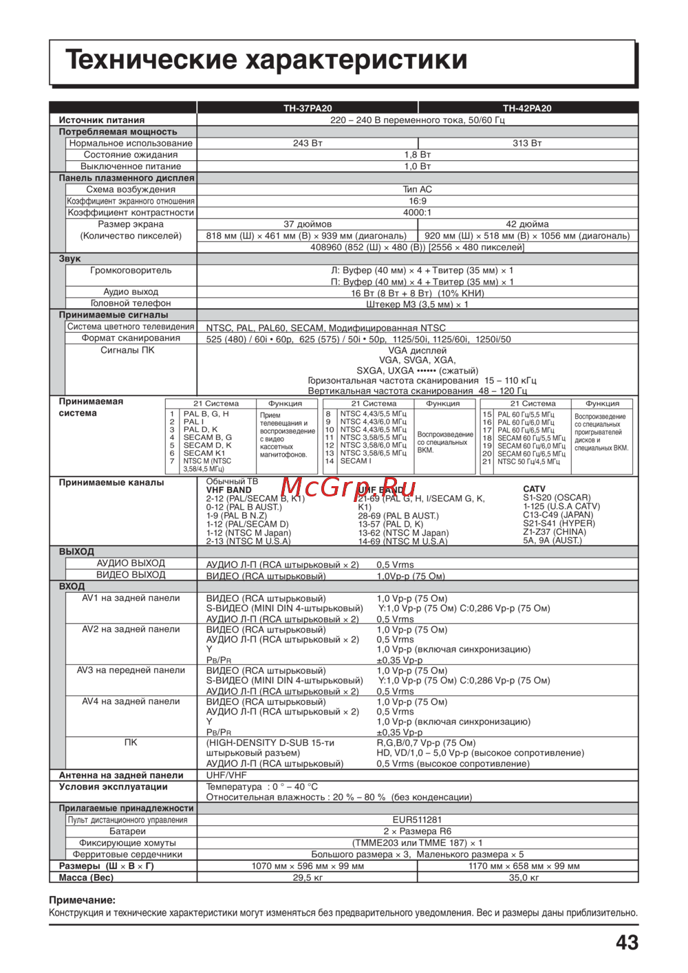 Panasonic TH-37PA20_TH-42PA20 [43/44] Технические характеристики