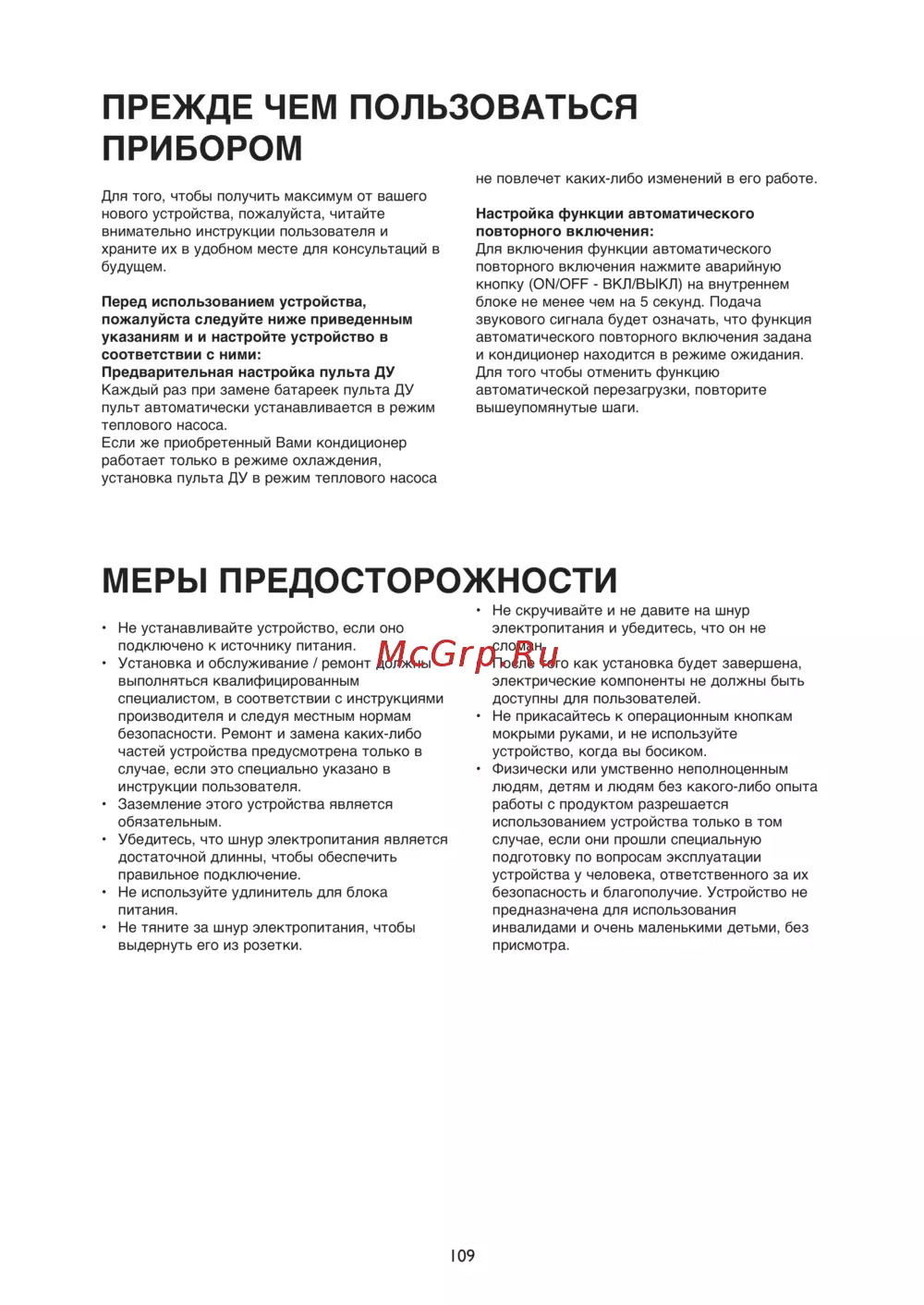 - Меры предосторожности при использовании кондиционера воздуха p.2