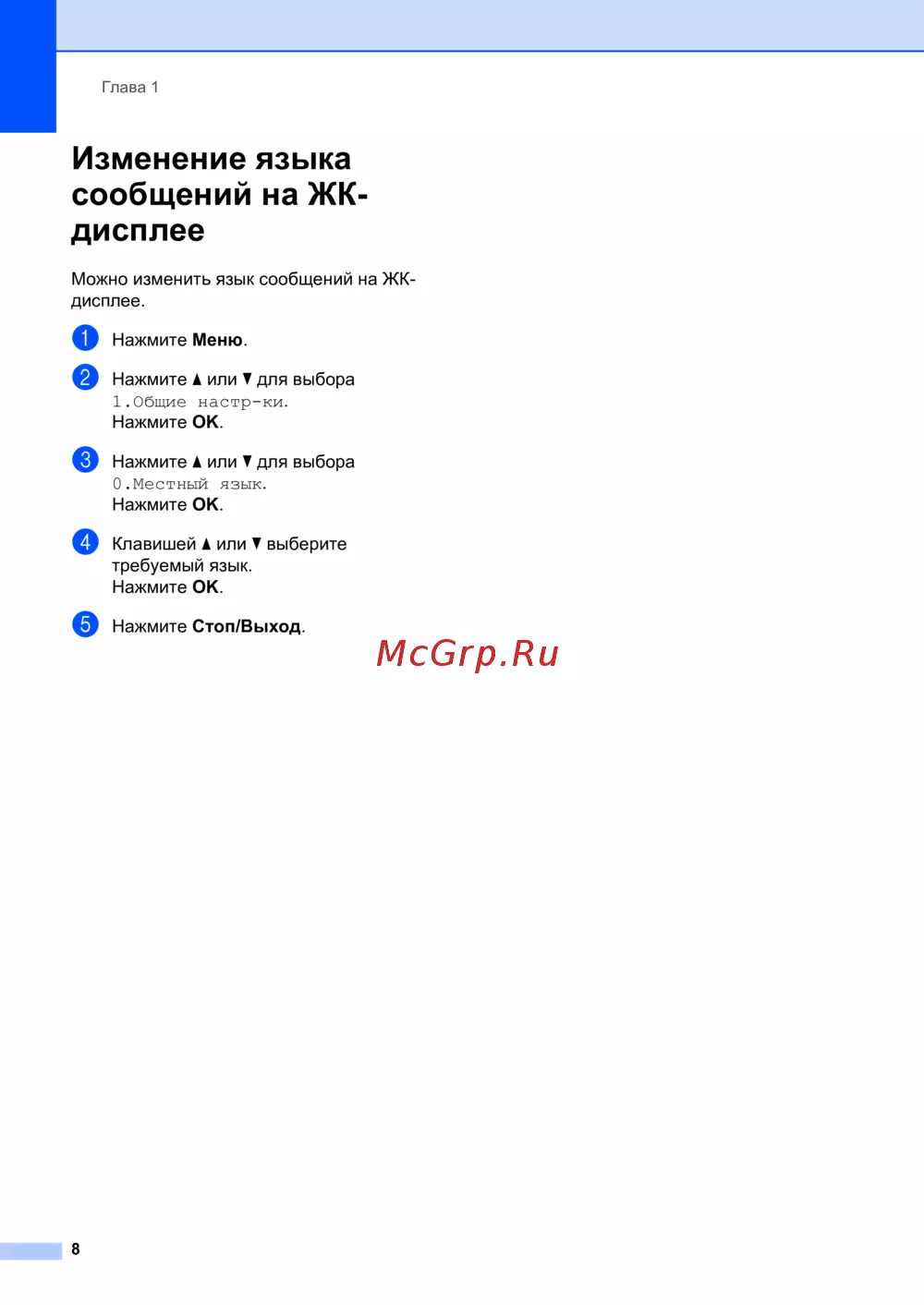 Brother DCP-7055(W) [16/126] Изменение языка сообщений на жк дисплее