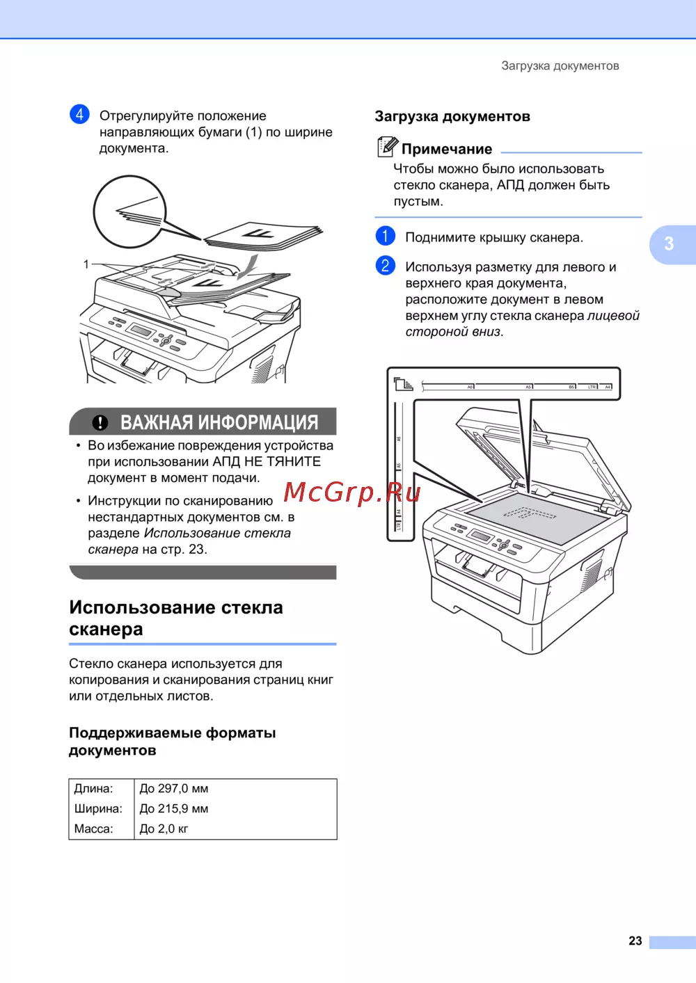 - В таблице ниже приведены размеры областей недоступных для сканирования и печати несканируемые и непечатаемые области зависят от формата бумаги или настроек в используемом приложении p.23