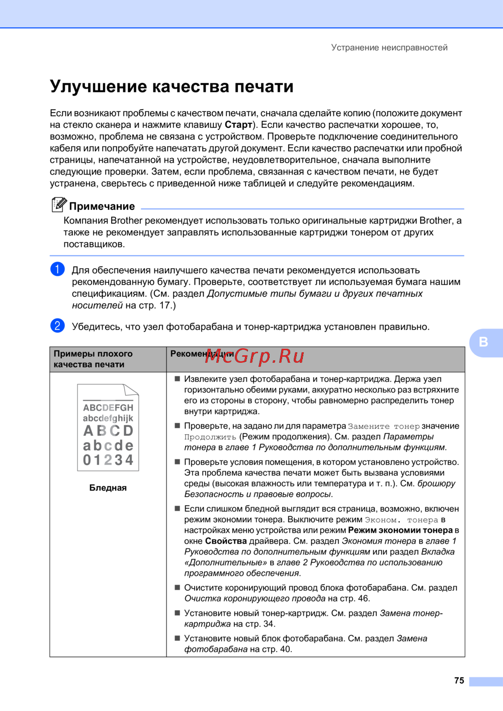 - Большую часть проблем можно легко решить самостоятельно если требуется дополнительная помощь на веб сайте центра поддержки brother brother solutions center можно прочитать ответы на часто задаваемые вопросы и рекомендации по устранению неисправностей p.78