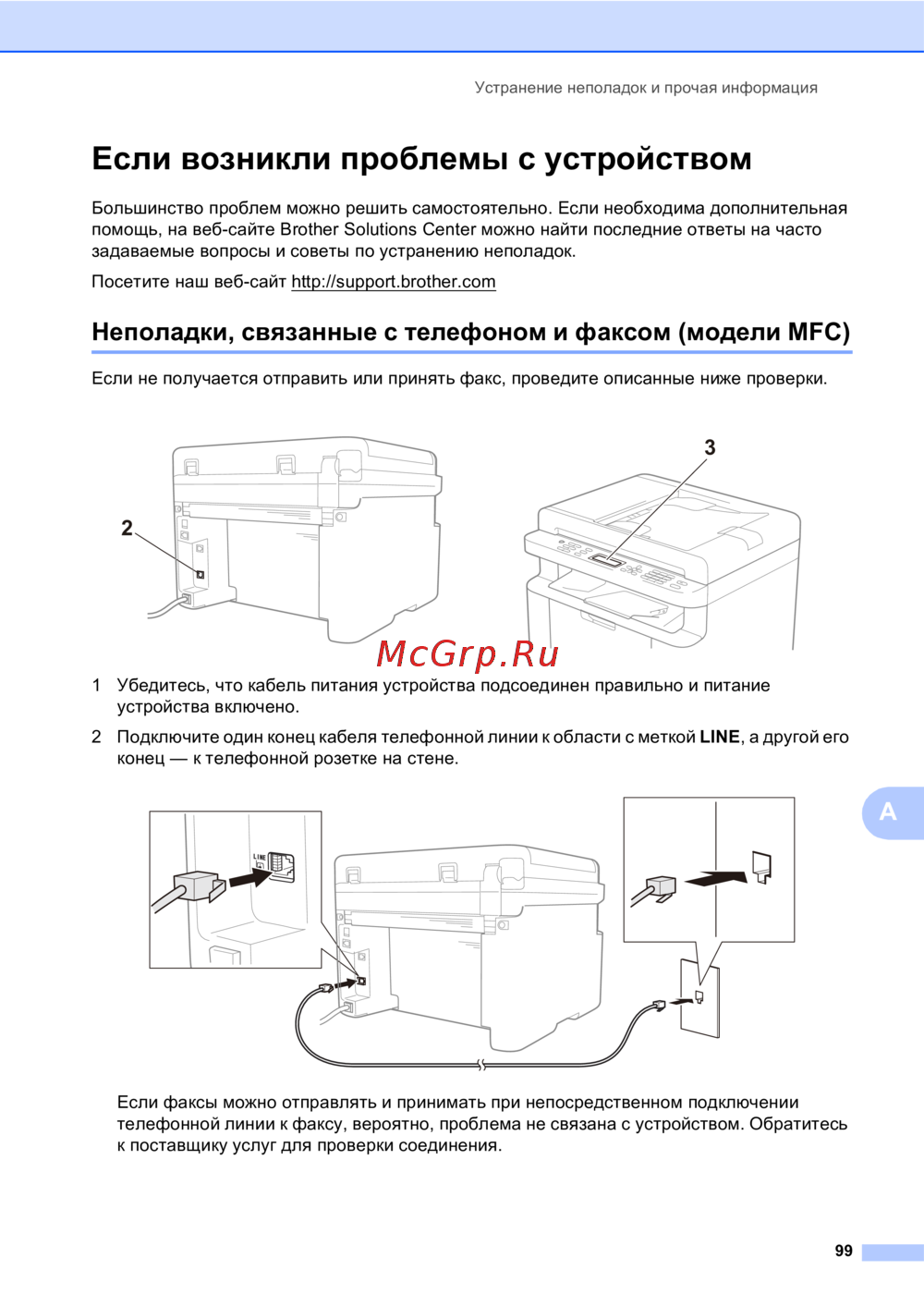 - Неполадки связанные с телефоном и факсом модели mfc p.108