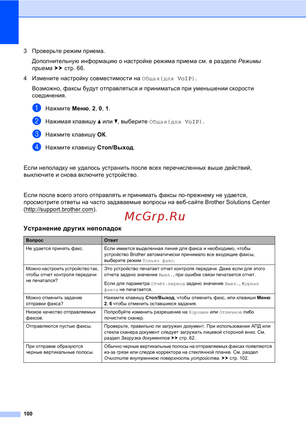 - Неполадки связанные с телефоном и факсом модели mfc p.108