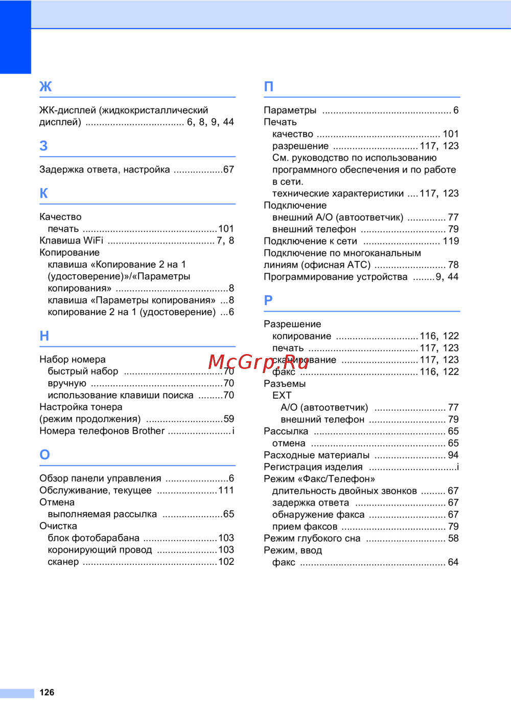 - Неполадки связанные с телефоном и факсом модели mfc p.108