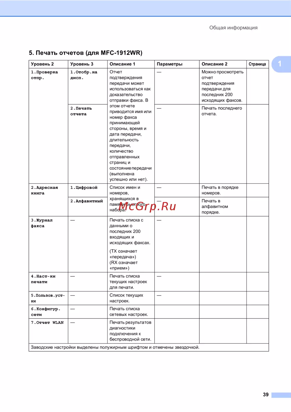 Brother MFC-1910W [48/137] Печать отчетов для mfc 1912wr