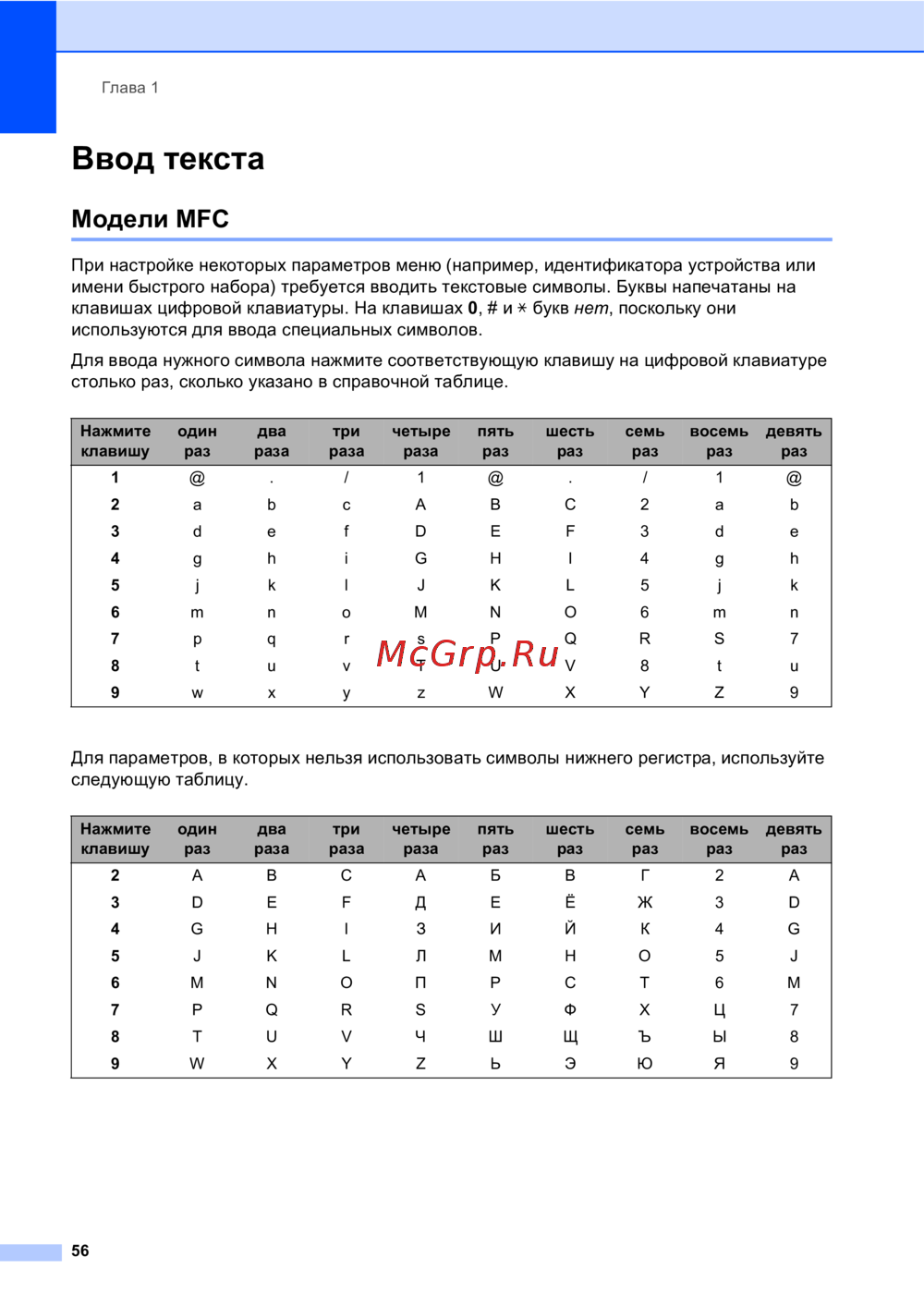 Для ввода нужного символа нажмите соответствующую клавишу на цифровой клавиатуре
