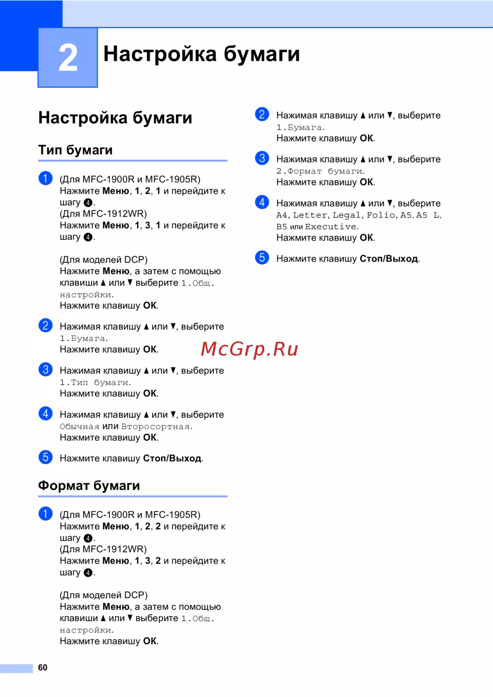 - Исходн уст ки для mfc 1900r и mfc 1905r p.20