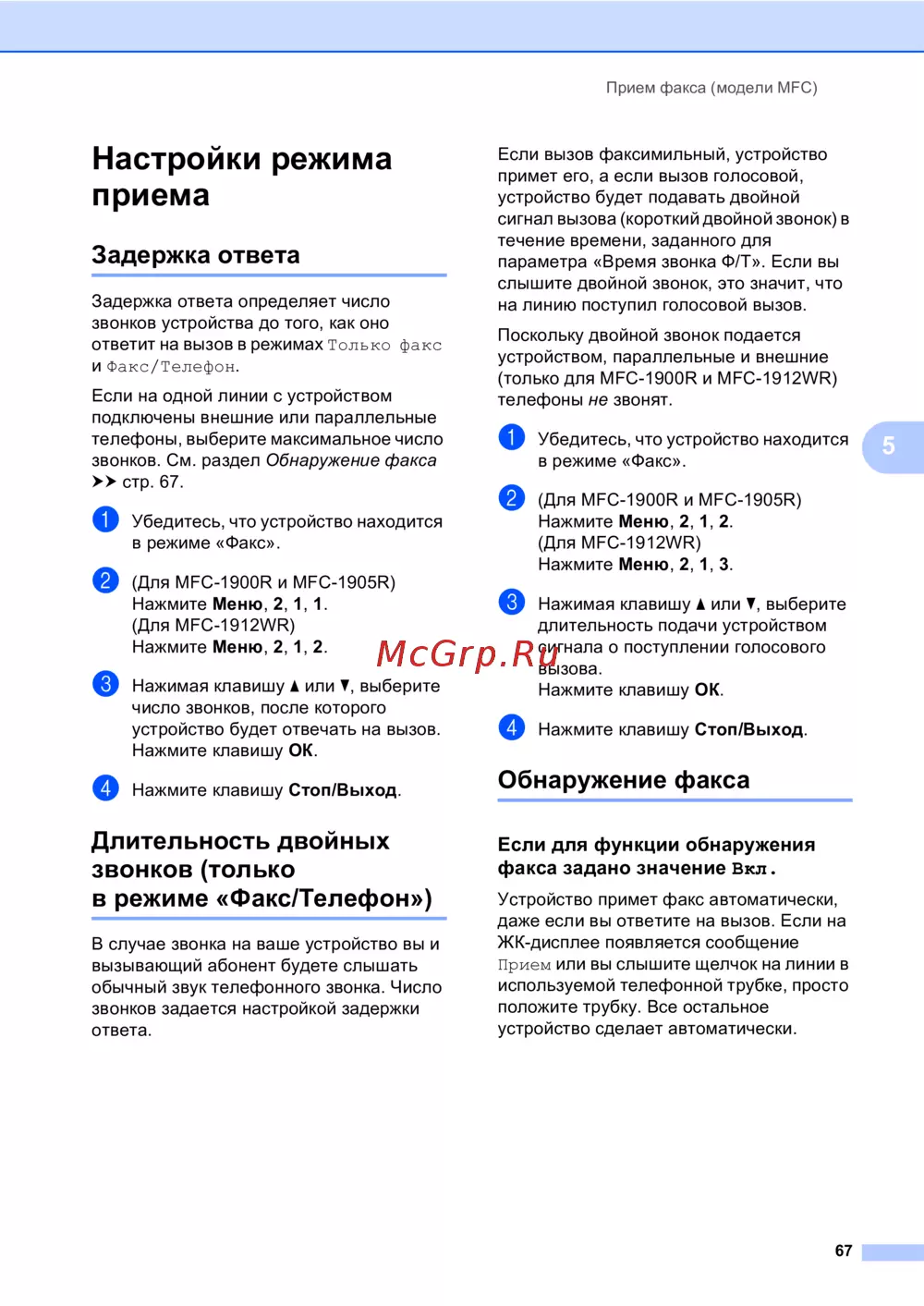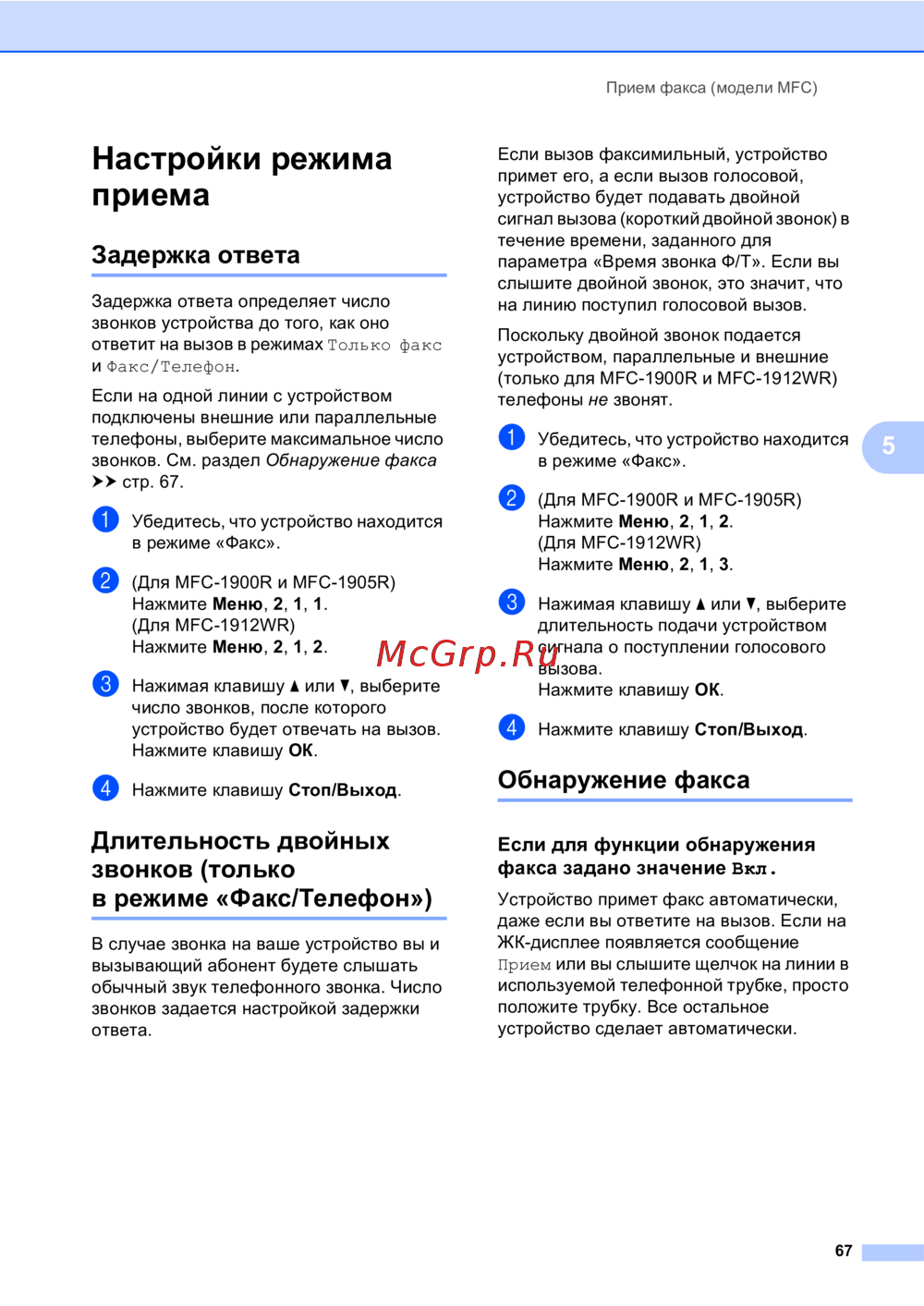 - При выключении устройства из его памяти стираются все данные факсов информацию о том как предотвратить потерю важных сообщений см в разделе передача факсов или журнала факсов на другое устройство модели mfc uu стр 109 p.107