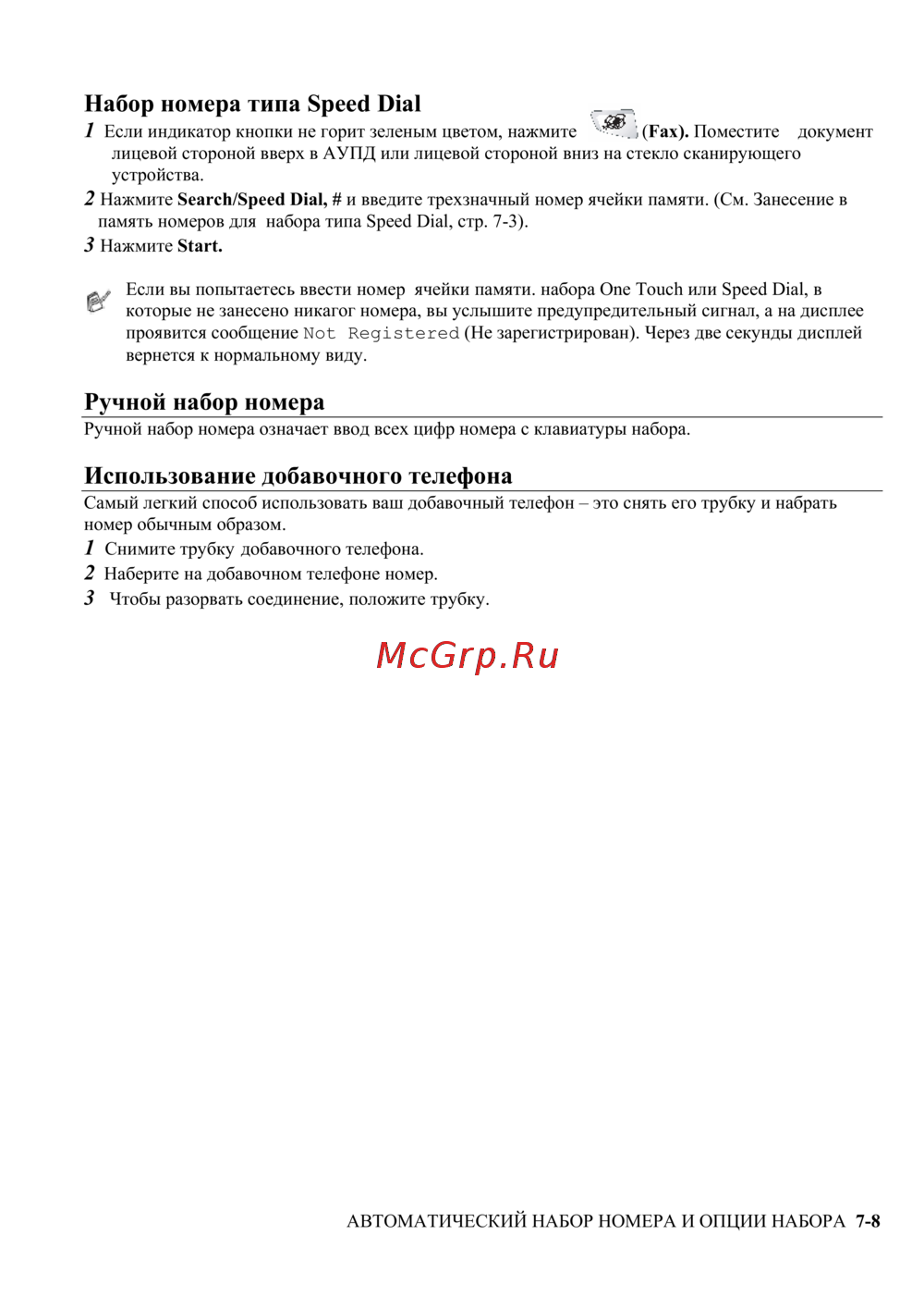 память номеров для набора типа Speed Dial, стр. 7-3).