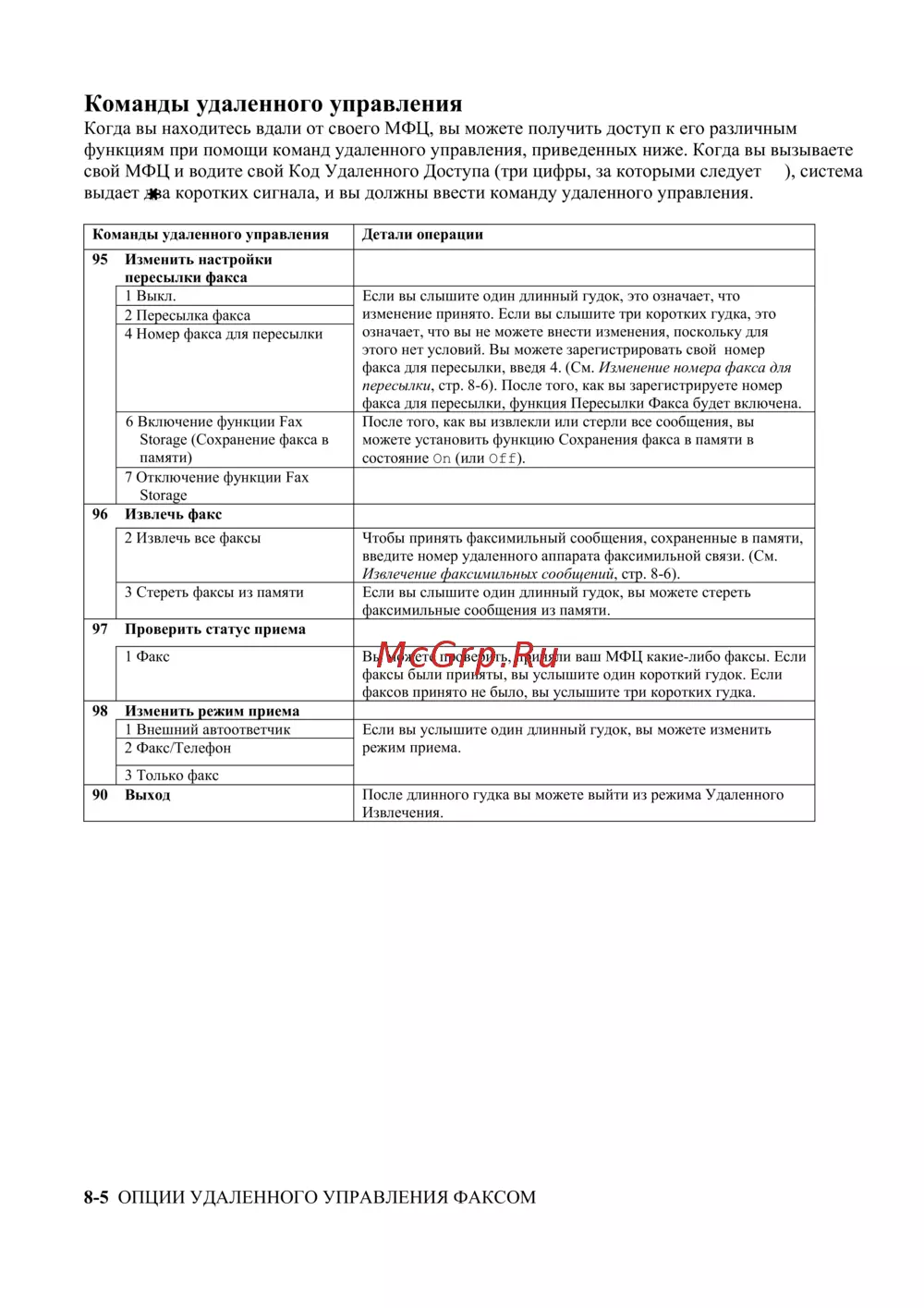 8-5 ОПЦИИ УДАЛЕННОГО УПРАВЛЕНИЯ ФАКСОМ