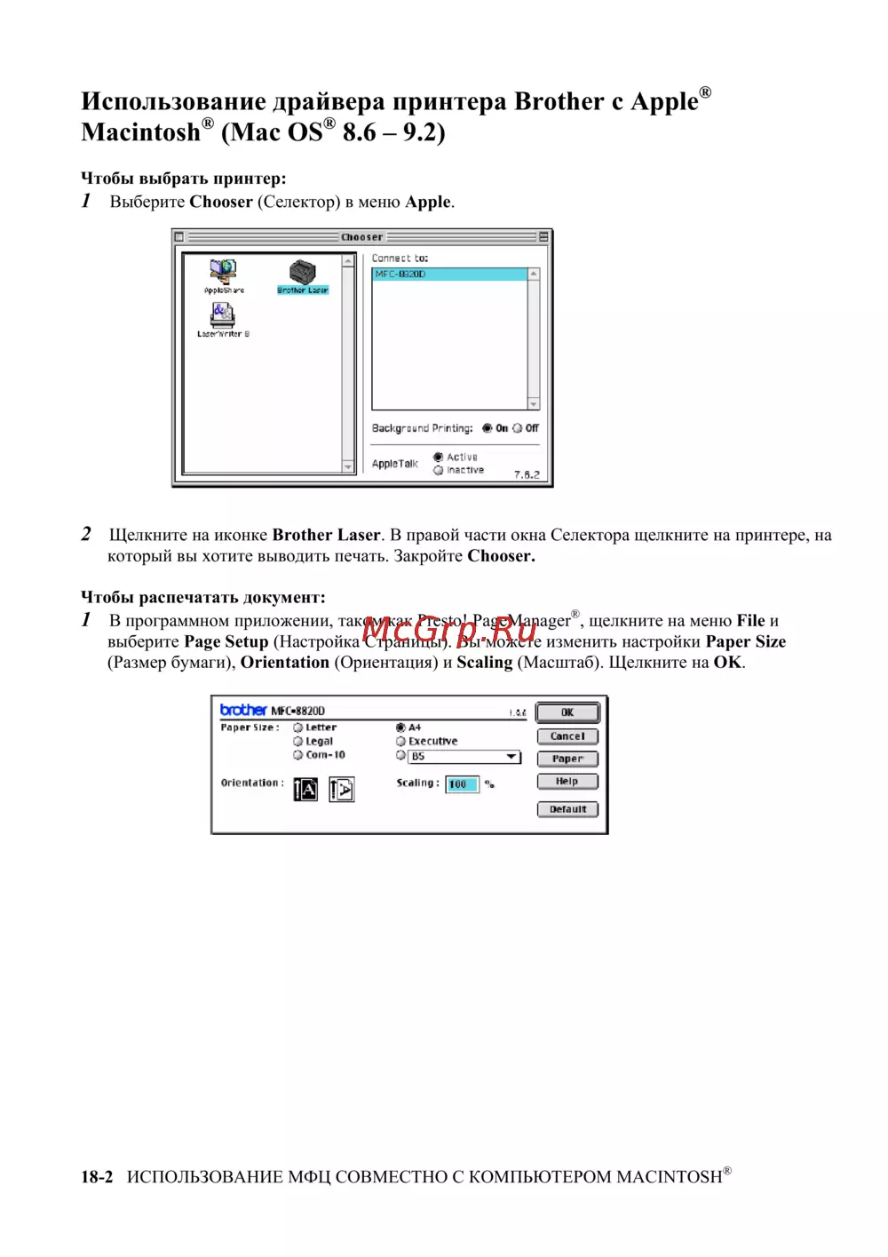 18-2 ИСПОЛЬЗОВАНИЕ МФЦ СОВМЕСТНО С КОМПЬЮТЕРОМ MACINTOSH