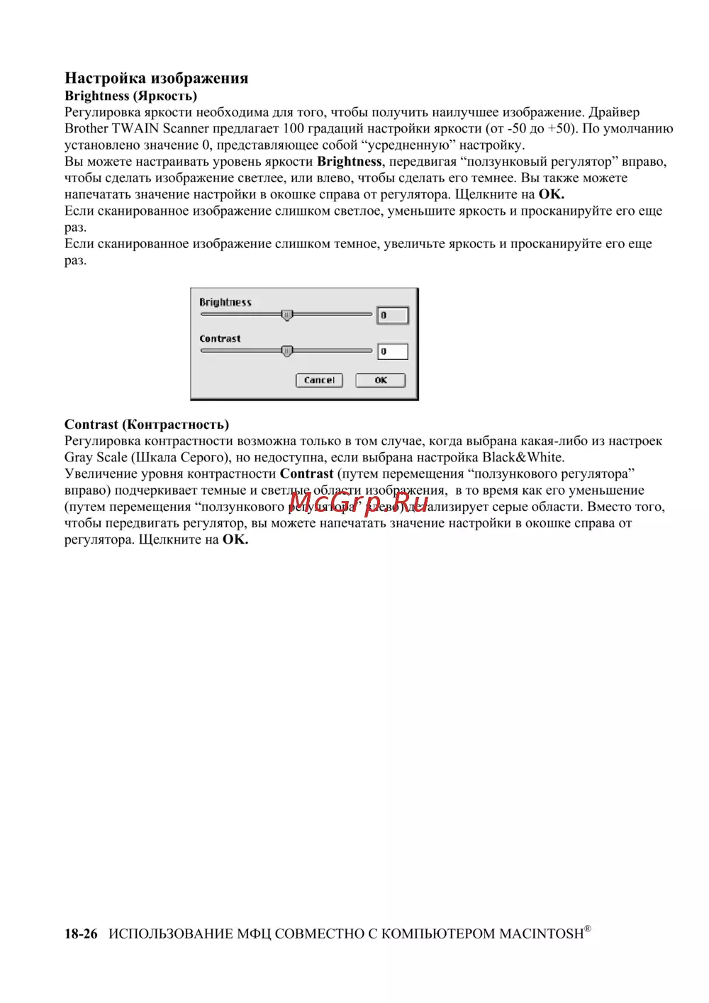 Brother TWAIN Scanner предлагает 100 градаций настройки яркости (от -50 до +50). По умолчанию
