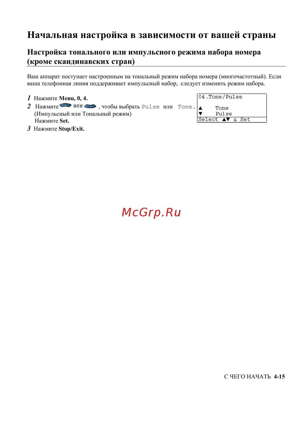 Ваш аппарат поступает настроенным на тональный режим набора номера (многочастотный). Если