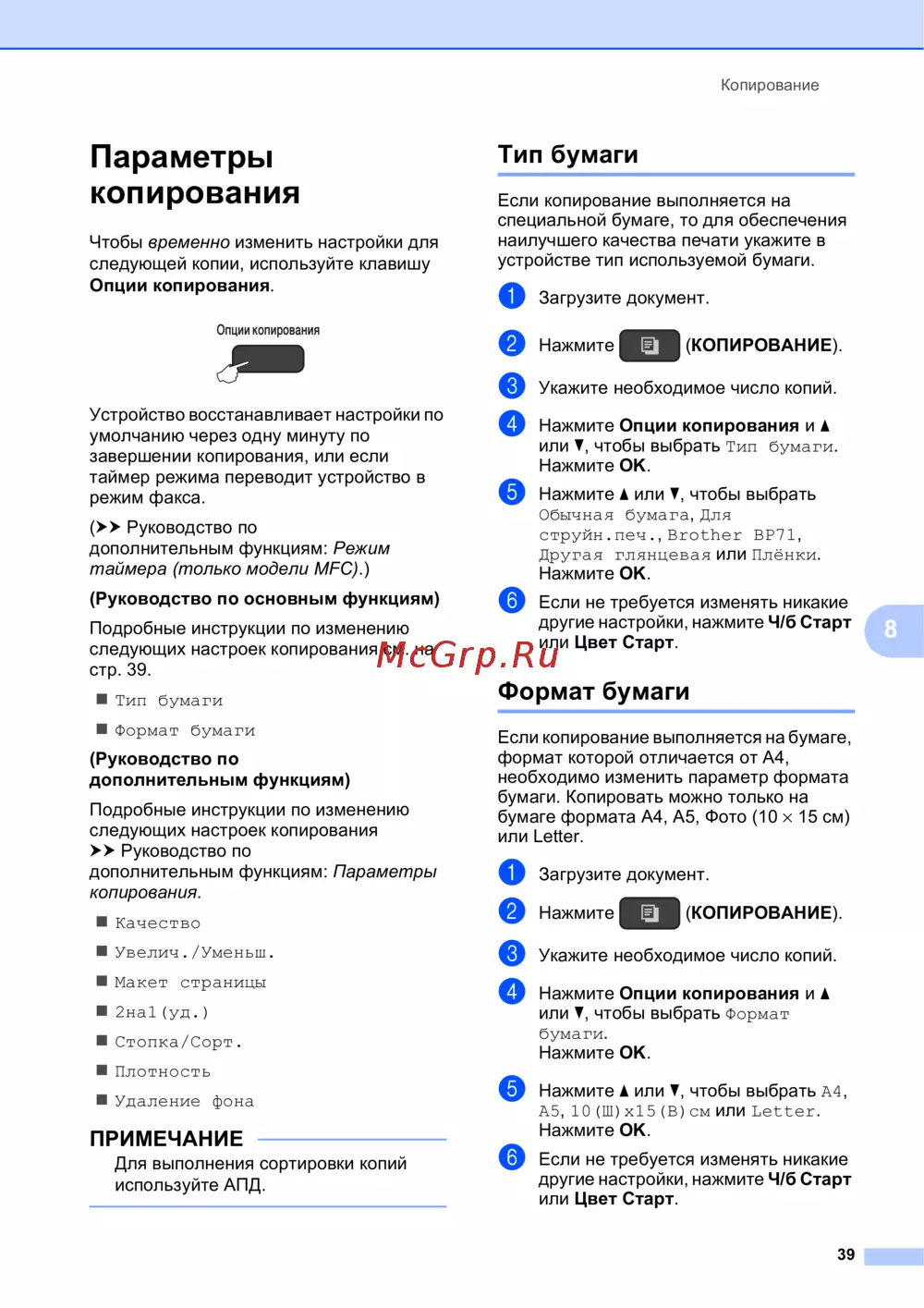 - Набор и сохранение номеров в памяти только модели mfc p.8