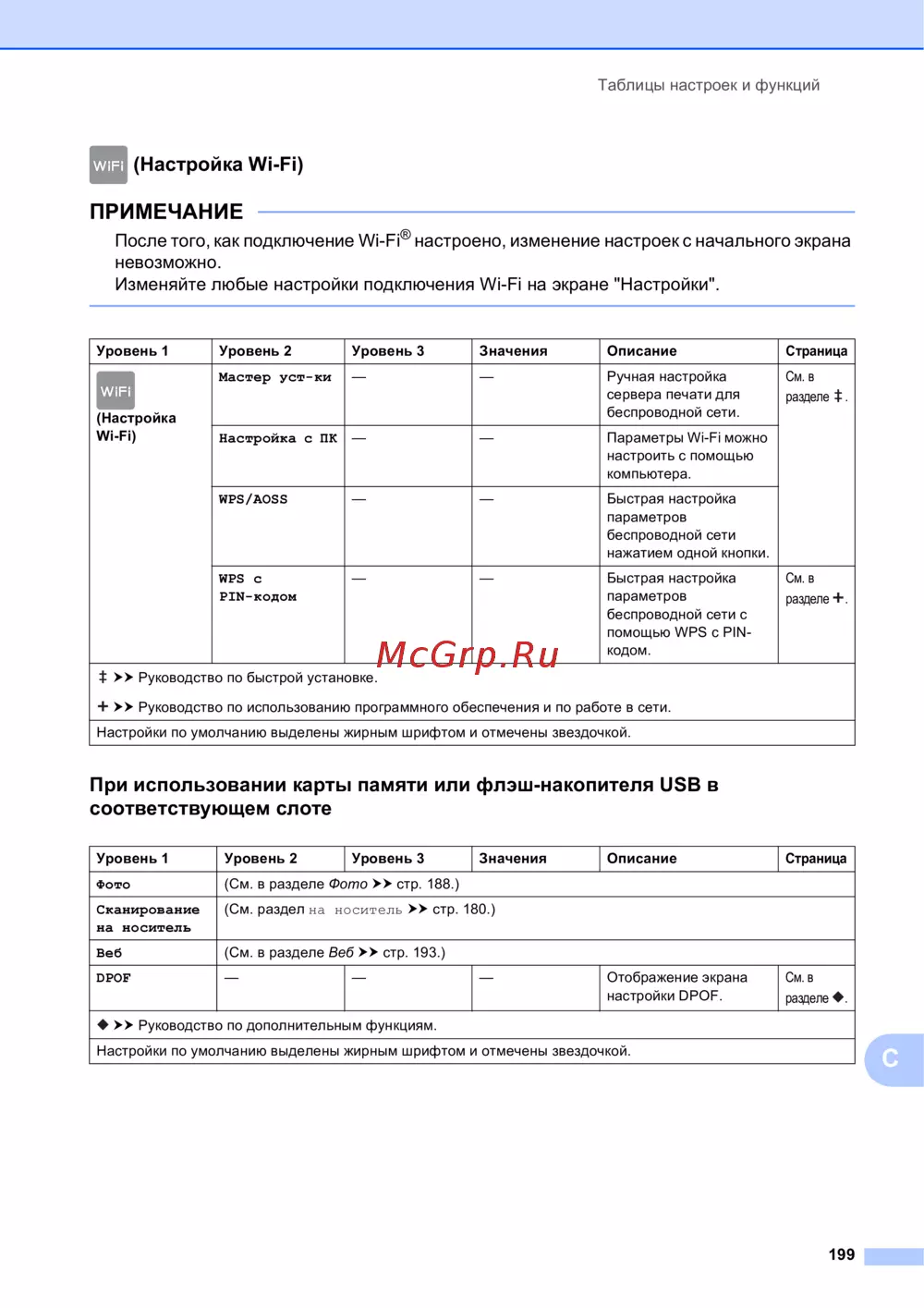 - Настроено изменение настроек с начального экрана невозможно изменяйте любые настройки подключения wi fi на экране настройки p.209