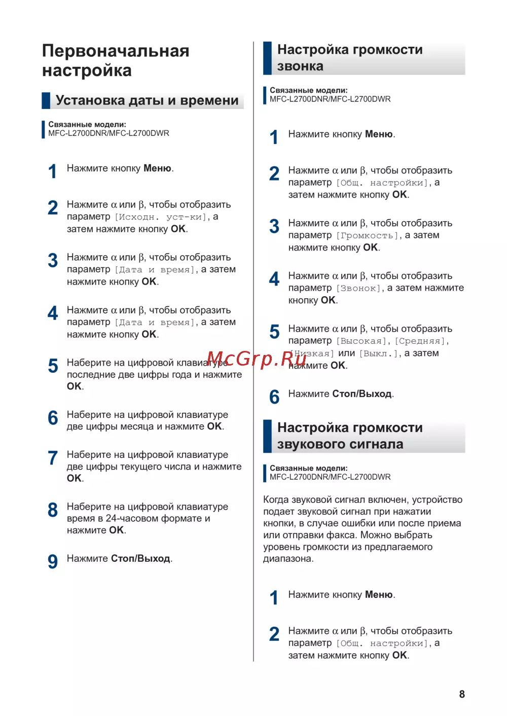 - Руководство по основным функциям dcp l2500dr dcp l2520dwr dcp l2540dnr mfc l2700dnr mfc l2700dwr p.1