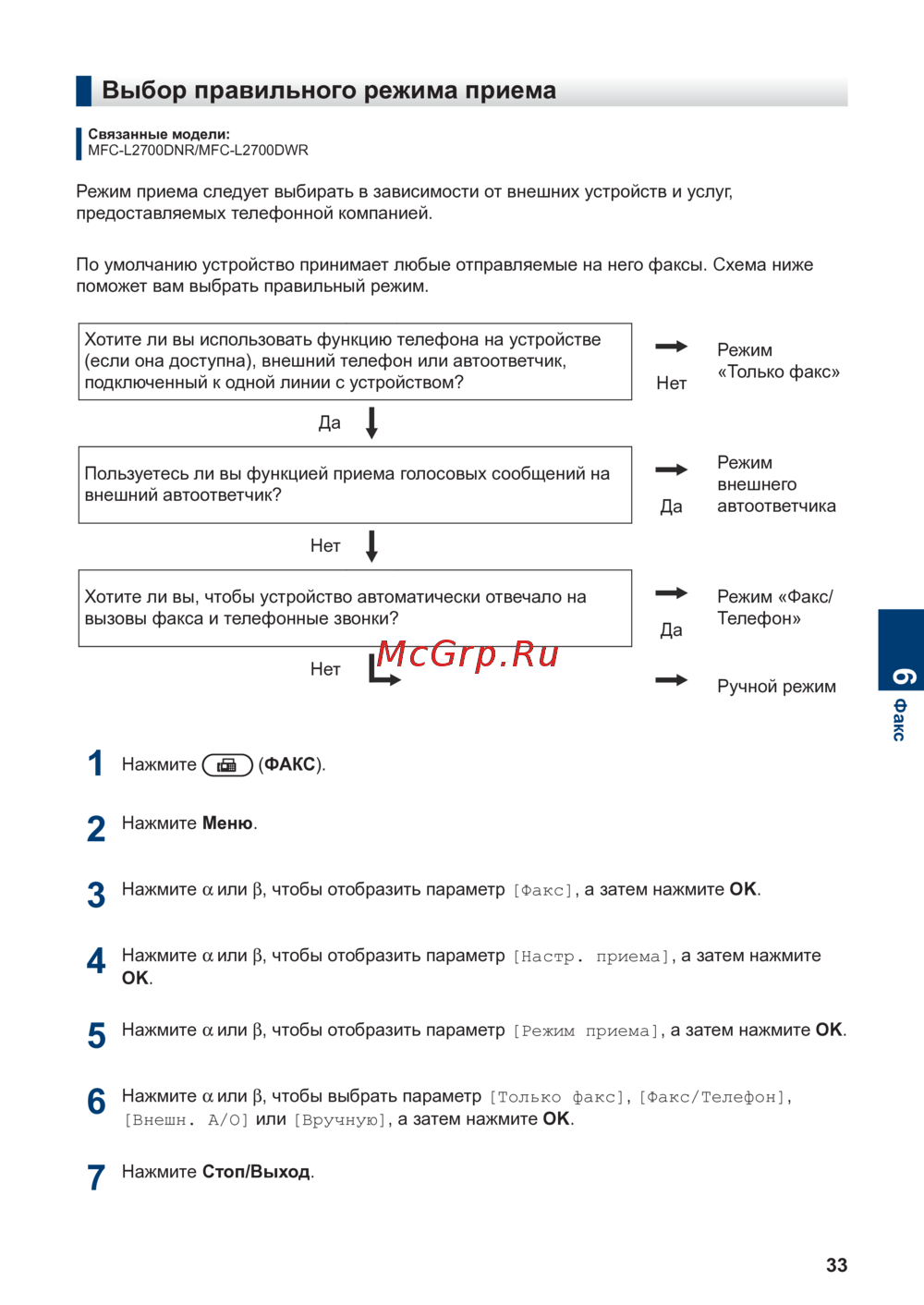 Brother MFC-L2700DNR (DWR) [45/82] Выбор правильного режима приема