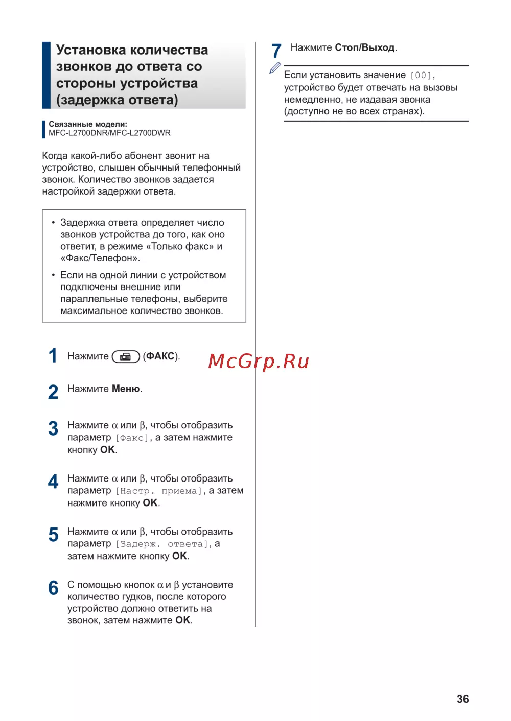 ![Brother MFC-L2700DNR (DWR) [48/82] Установка количества звонков до ответа со стороны устройства задержка ответа](/views2/1937951/page48/bg30.png)