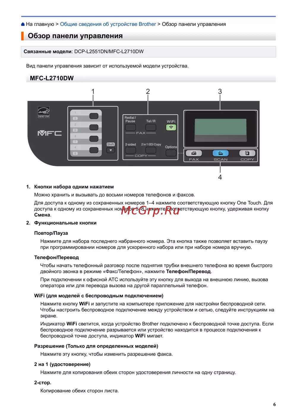 На главную > Общие сведения об устройстве Brother > Обзор панели управления