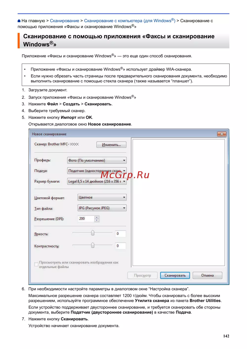 разрешением, используйте программное обеспечение Утилита сканера из пакета Brother Utilities.