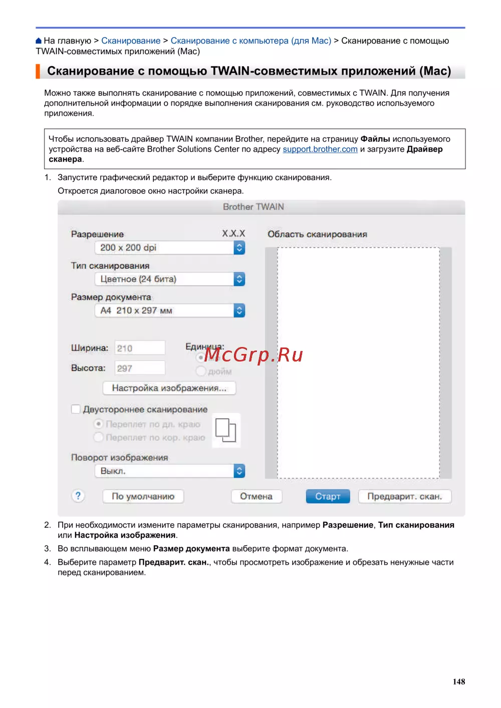 Brother MFC-L2710DW [155/644] Сканирование с помощью twain совместимых приложений mac
