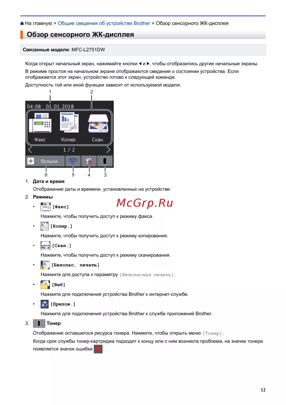 ![Brother MFC-L2710DW [19/644] Обзор сенсорного жк дисплея](/views2/1937952/page19/bg13.png)
