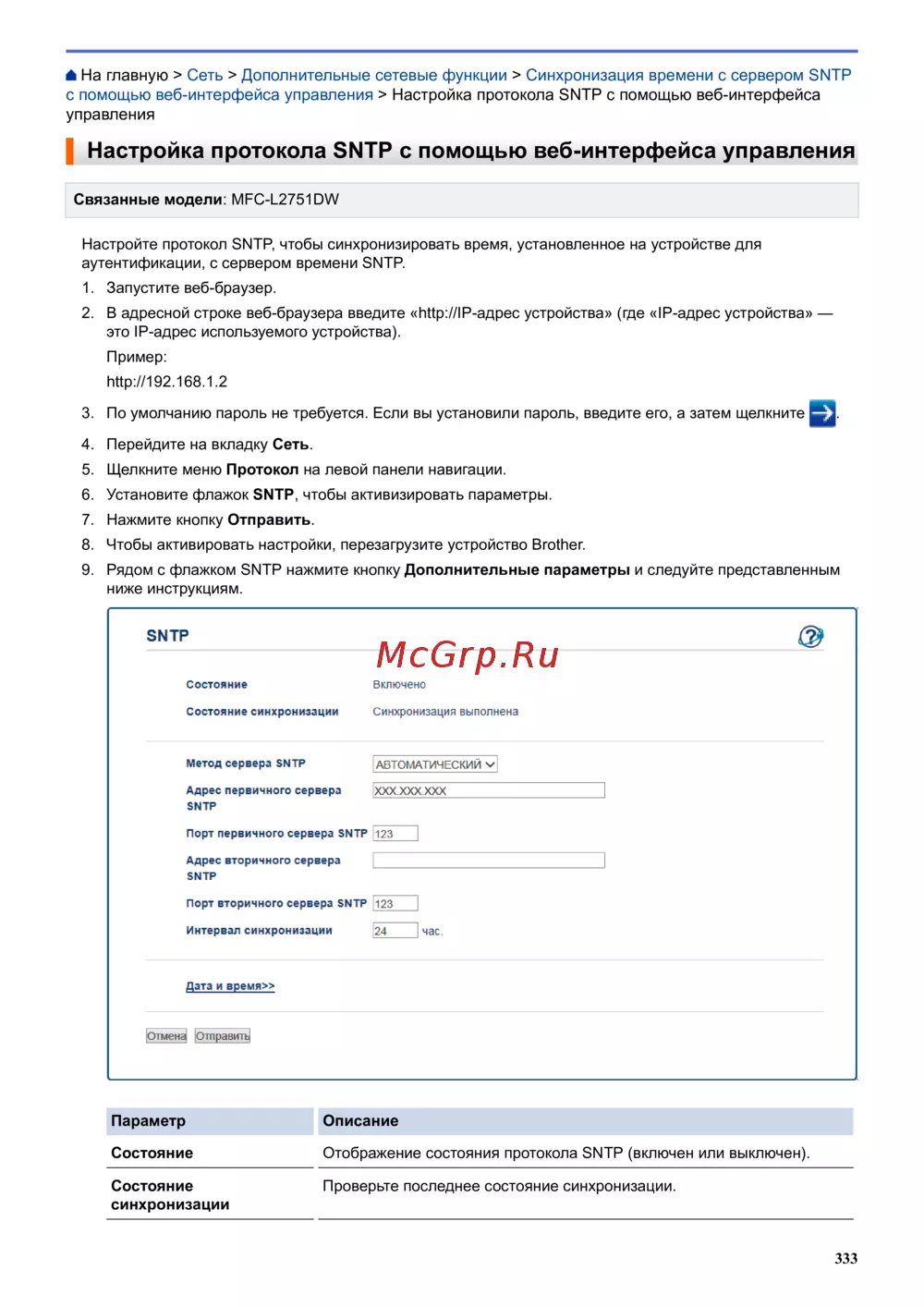 Brother MFC-L2710DW [340/644] Настройка протокола sntp с помощью веб интерфейса управления