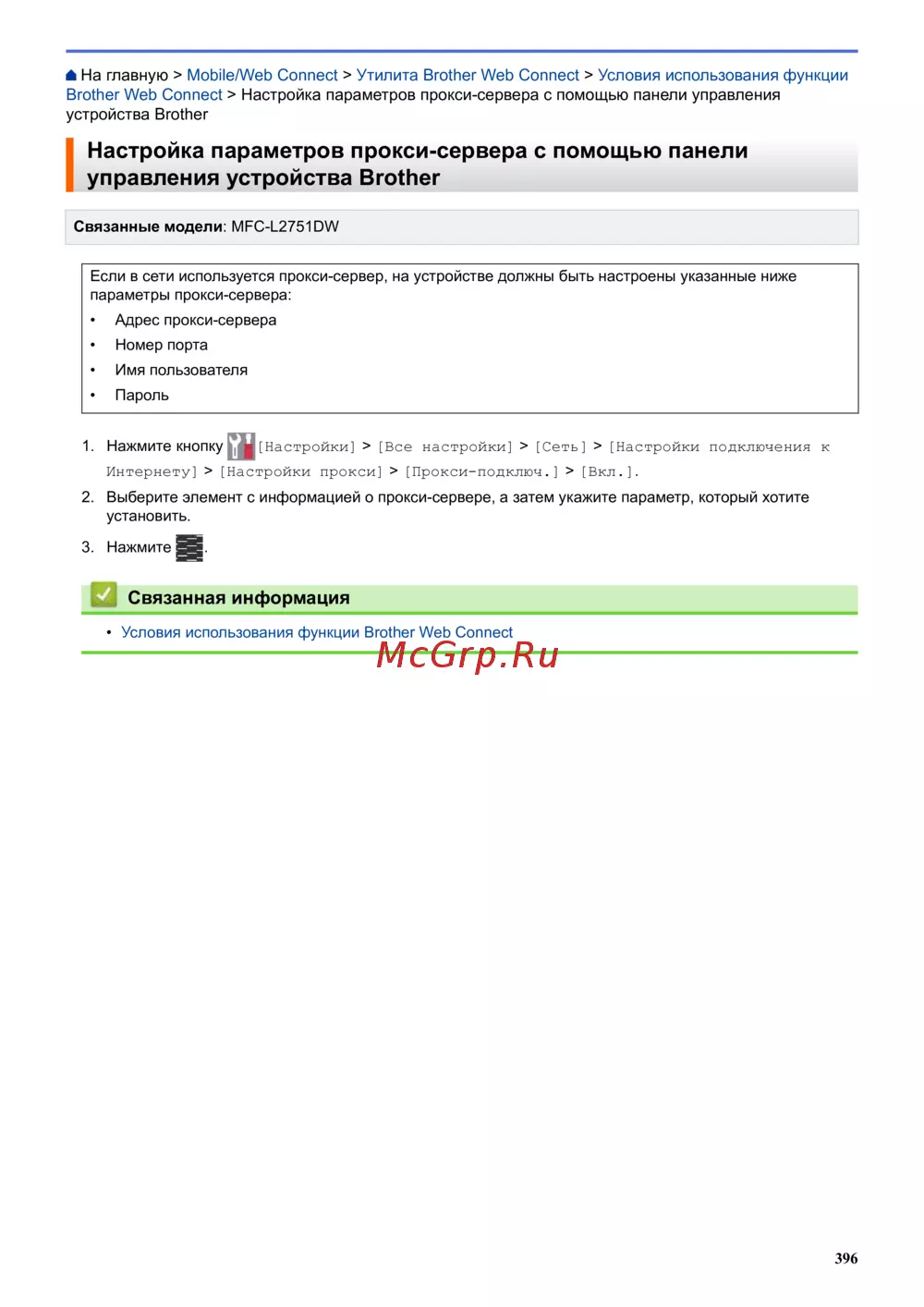 Brother Web Connect > Настройка параметров прокси-сервера с помощью панели управления