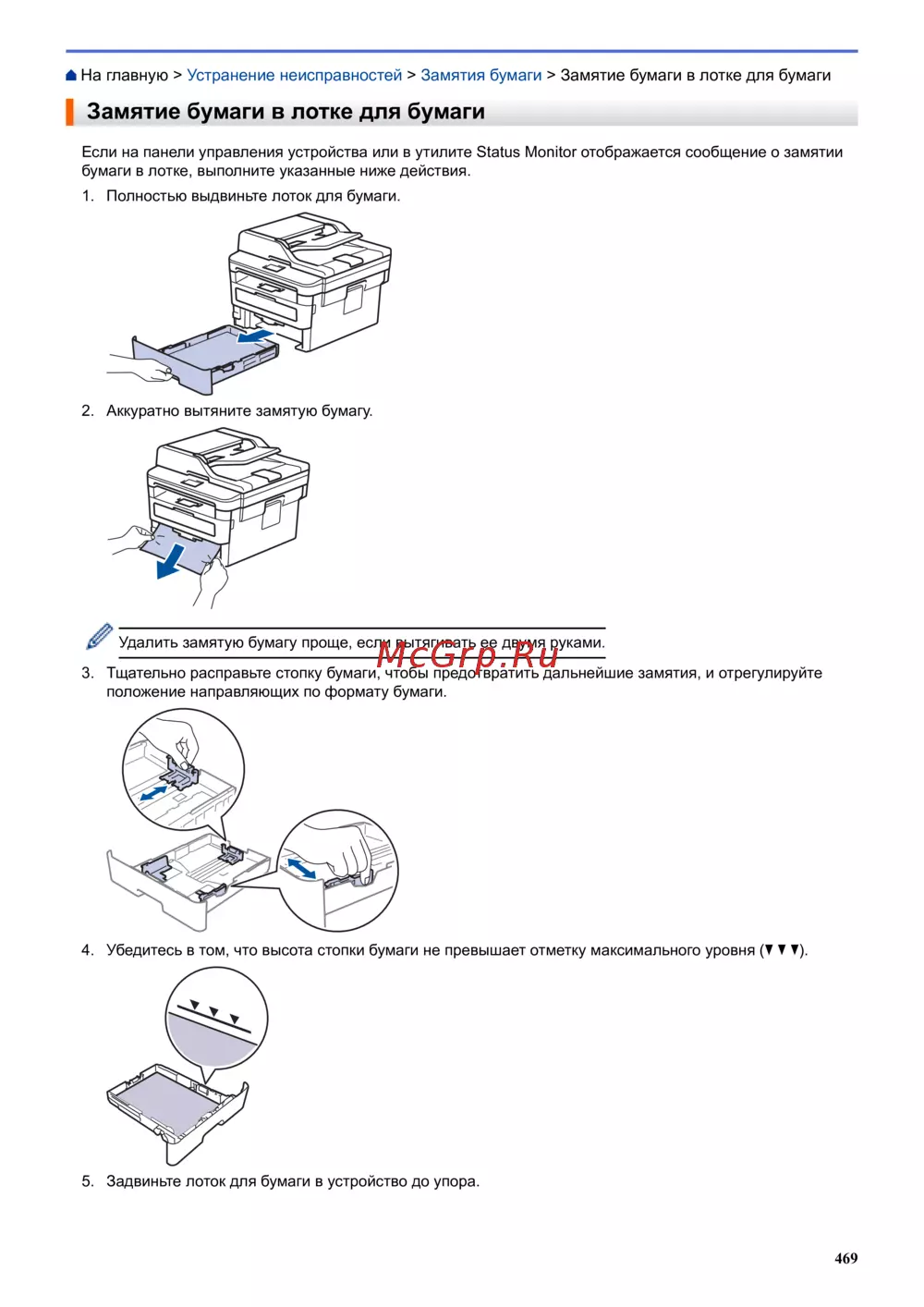 На главную > Устранение неисправностей > Замятия бумаги > Замятие бумаги в лотке для бумаги