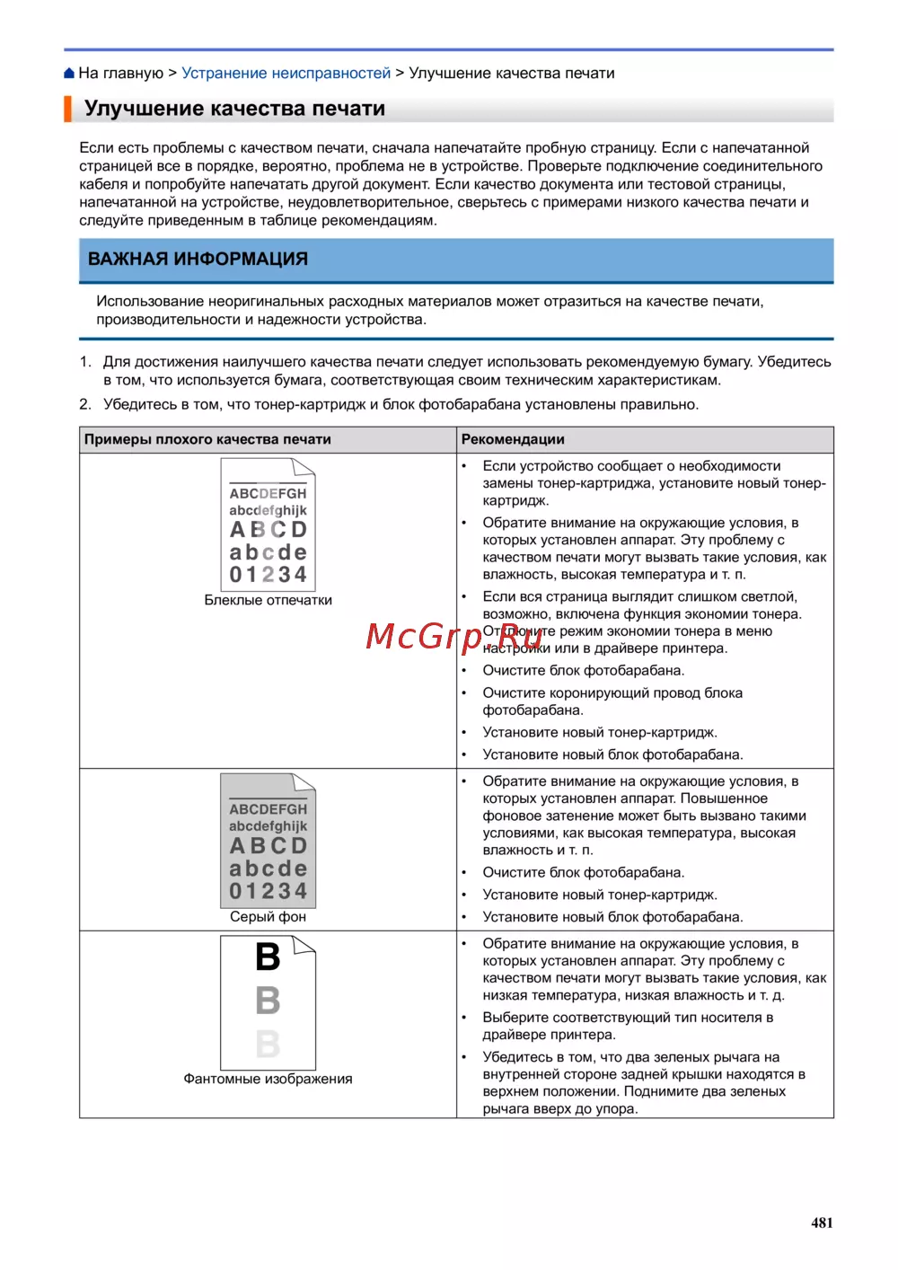 Использование неоригинальных расходных материалов может отразиться на качестве печати,