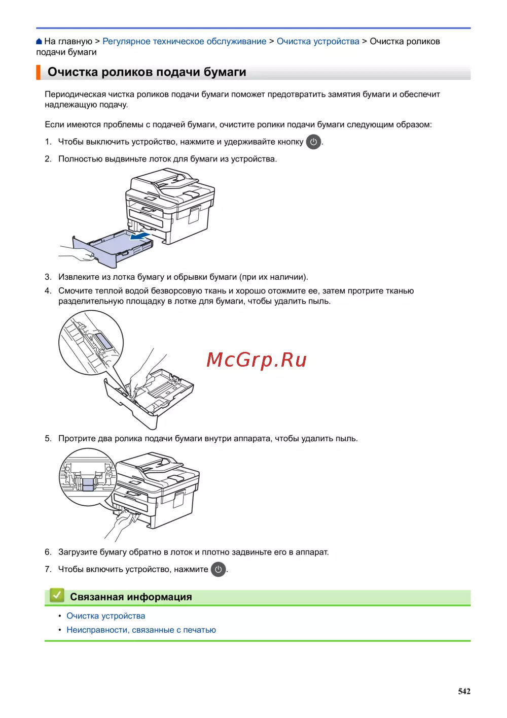 Периодическая чистка роликов подачи бумаги поможет предотвратить замятия бумаги и обеспечит