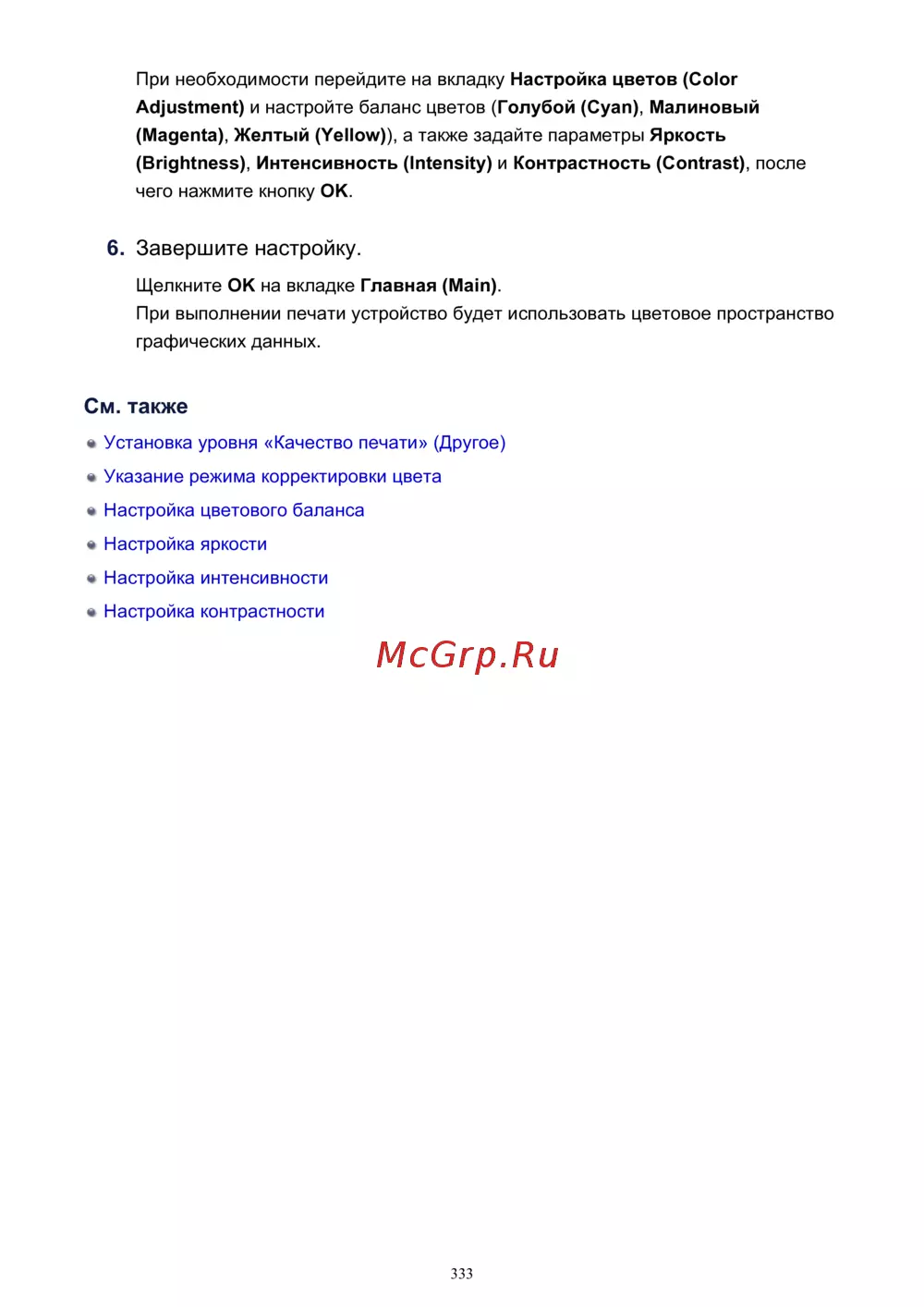 (Magenta), Желтый (Yellow)), а также задайте параметры Яркость