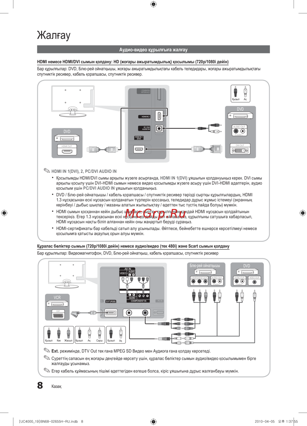 DVD / Блю-рей ойнатқышы / кабель қорапшасы / спутниктік ресивер тәрізді сыртқы құрылғылардың, HDMI