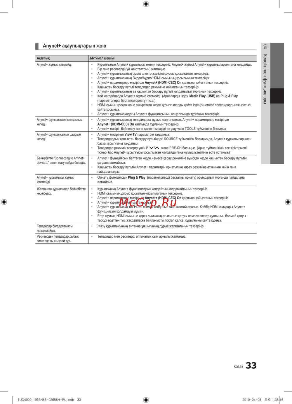 ¦ Anynet+ ақаулықтарын жою