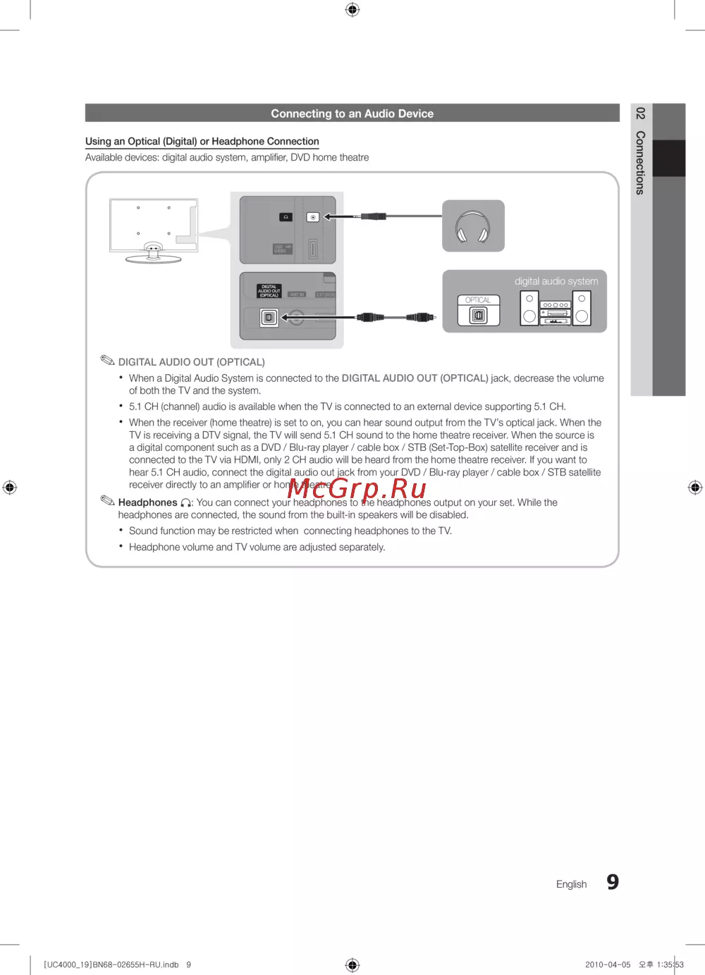 Samsung UE-19C4000 [9/169] Connecting to an audio device