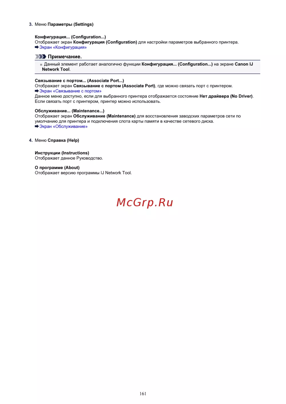 Данный элемент работает аналогично функции Конфигурация... (Configuration...) на экране Canon IJ