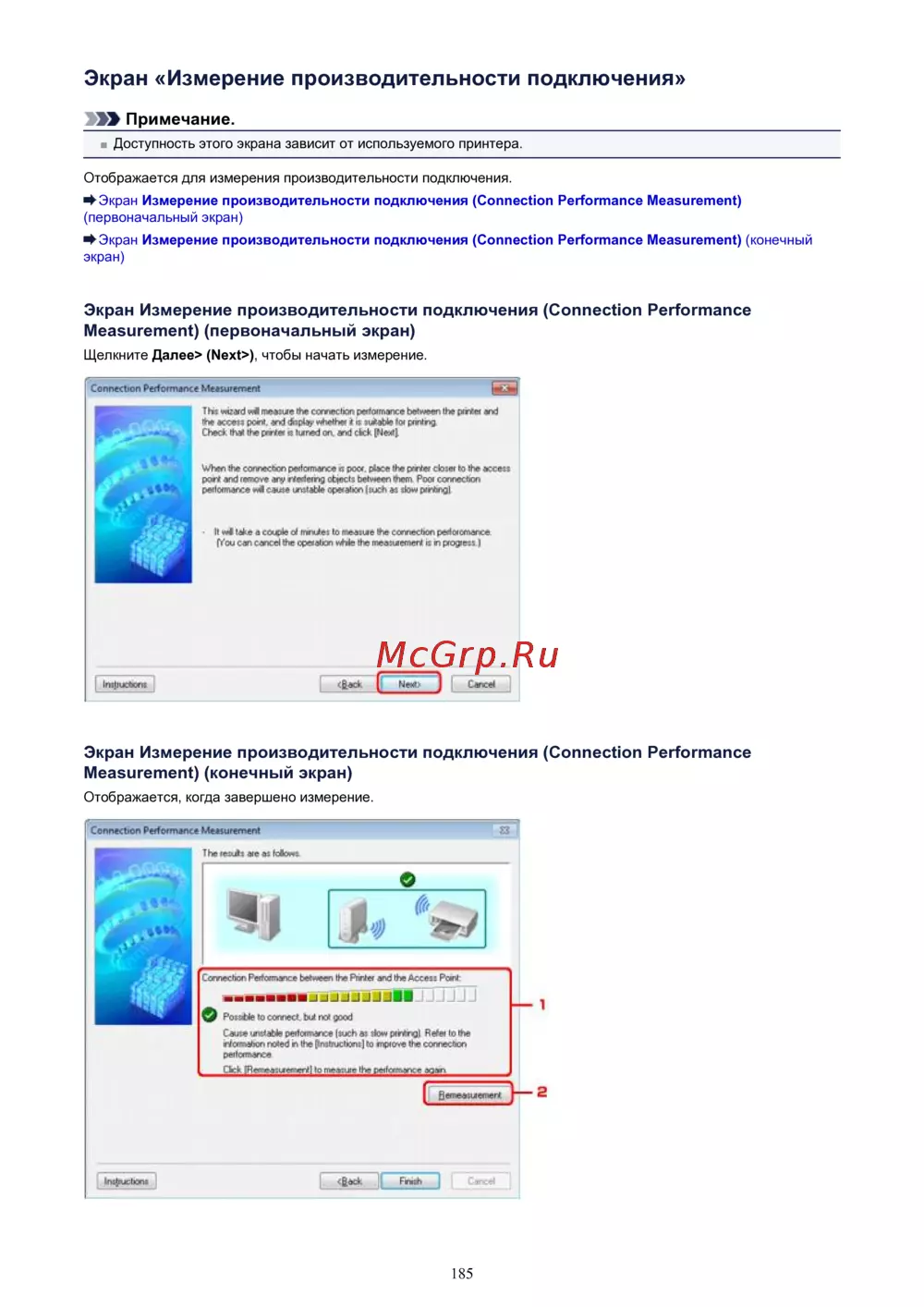 Canon PIXMA MX454 [185/897] Экран измерение производительности подключения connection performance measurement первоначальный экран
