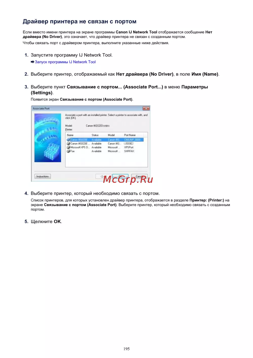 Canon PIXMA MX454 [195/897] Драйвер принтера не связан с портом