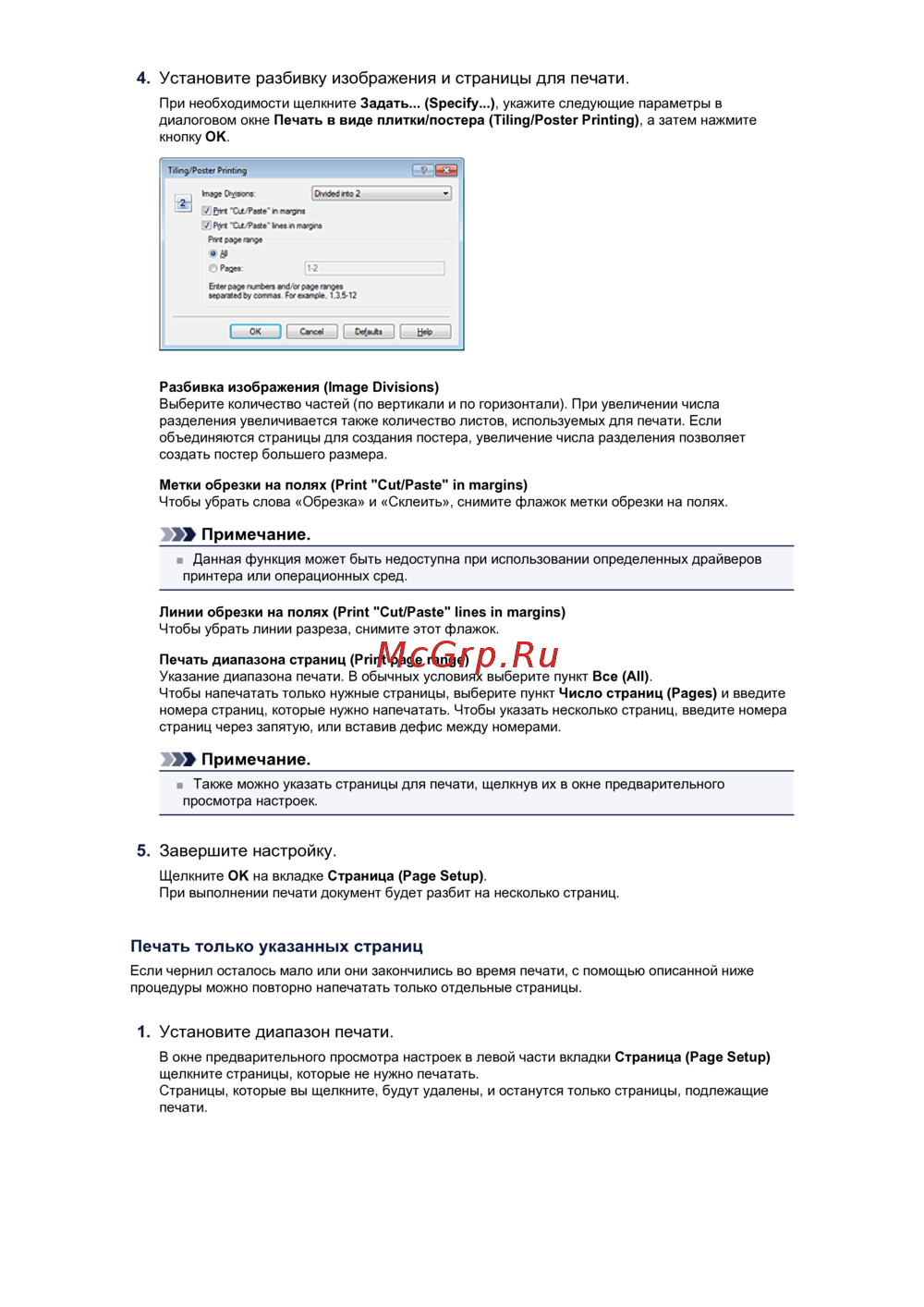 Canon PIXMA MX454 [242/897] Установите разбивку изображения и страницы для печати