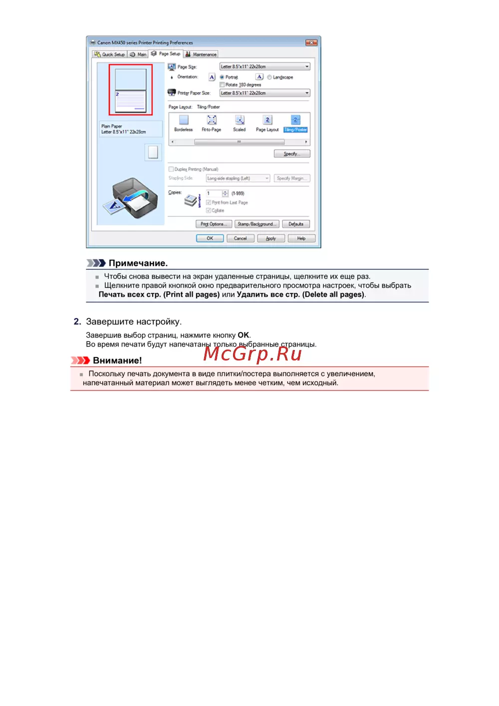 Поскольку печать документа в виде плитки/постера выполняется с увеличением,