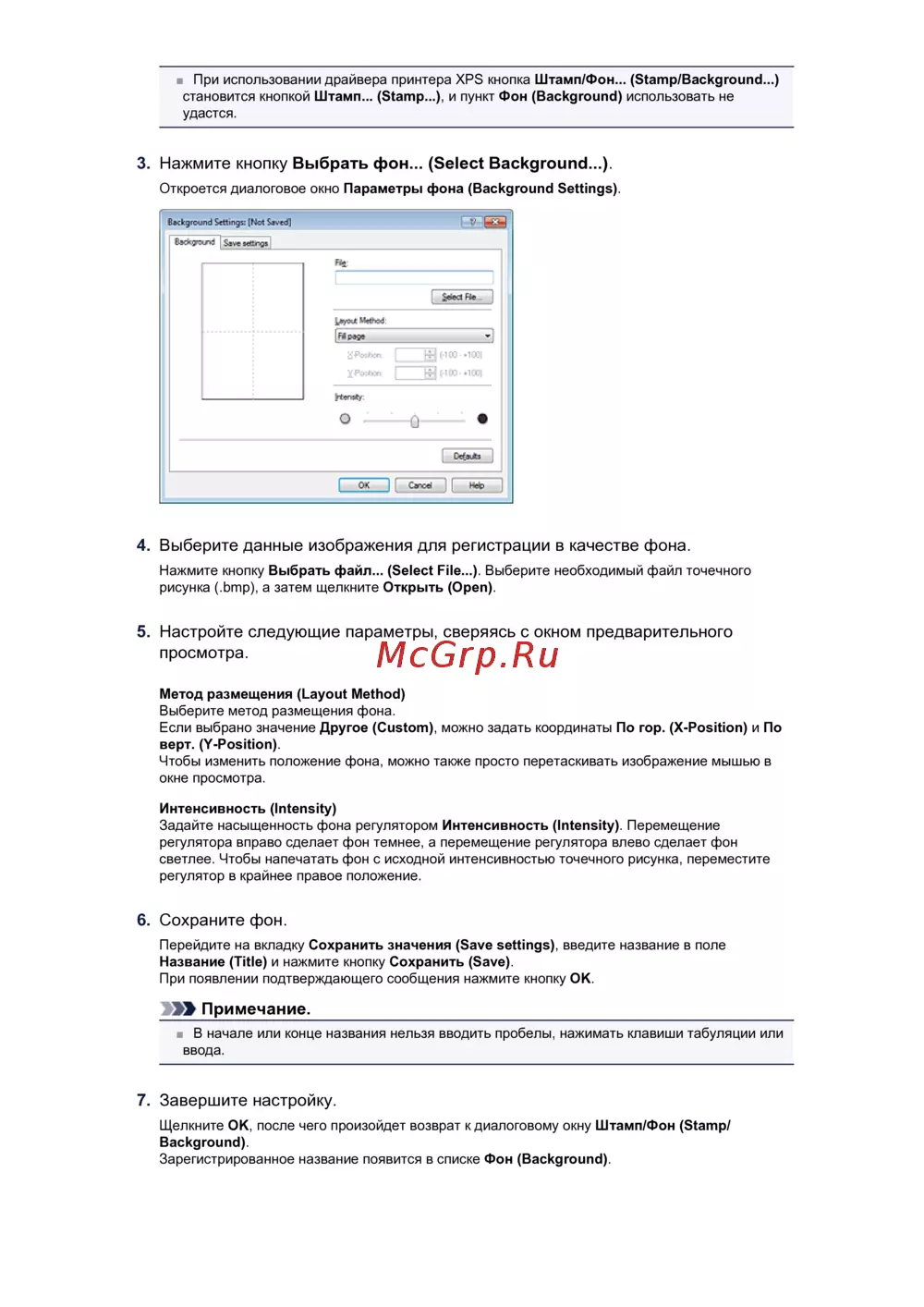 При использовании драйвера принтера XPS кнопка Штамп/Фон... (Stamp/Background...)