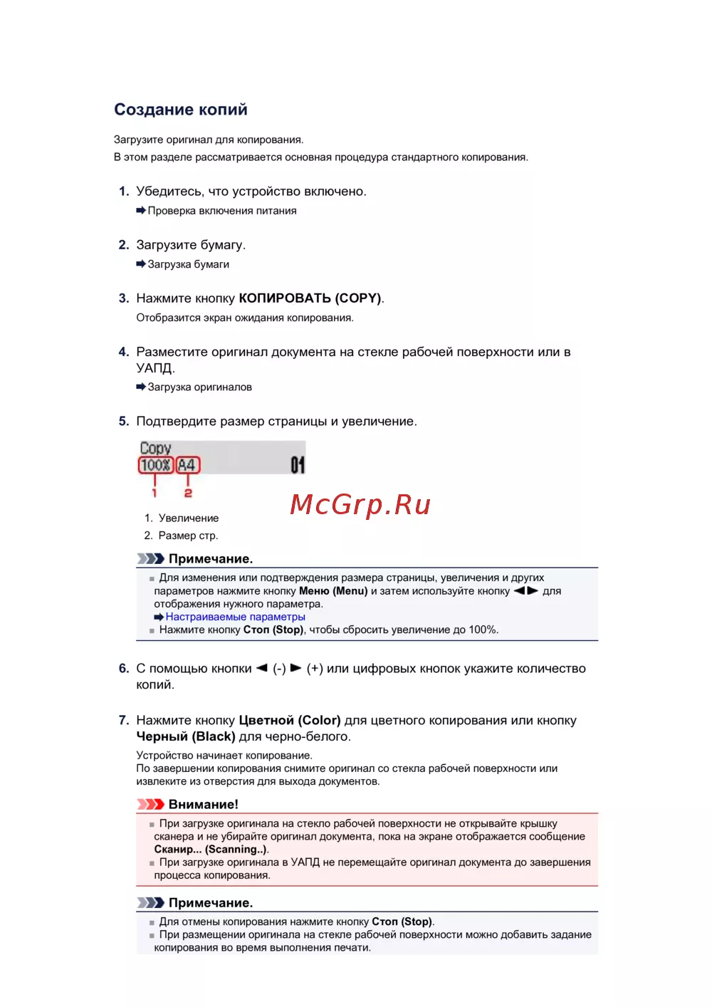 В этом разделе рассматривается основная процедура стандартного копирования.