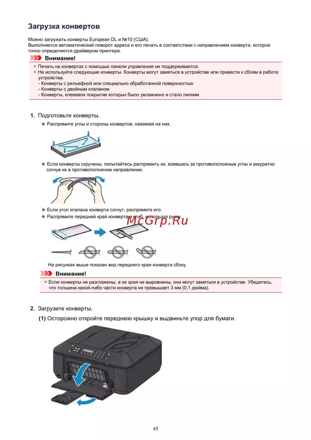 Canon PIXMA MX454 [45/897] Подготовьте конверты