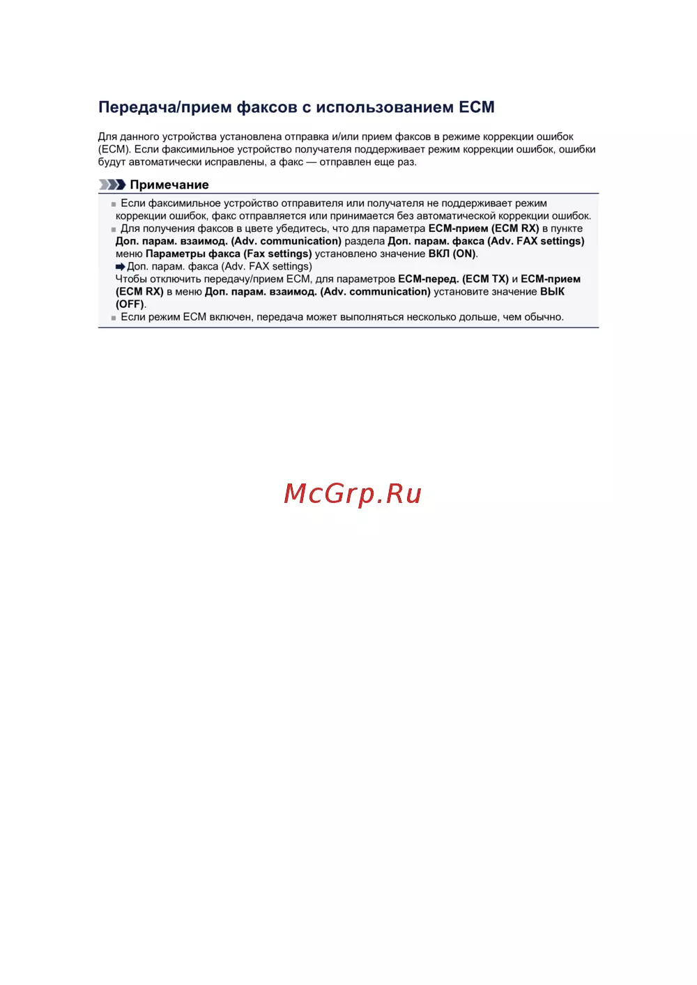 (ECM). Если факсимильное устройство получателя поддерживает режим коррекции ошибок, ошибки